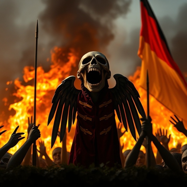 Frentic Hardstyle-Grindcore, Female Choir, growling rap, dead corpses rising, bone pyramid, overtone-bagpipe-tremolo, paranormal glossolalia infernale, forsaken cows mooing, waltzcore-drums