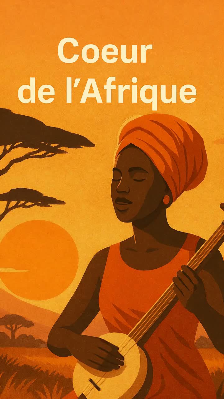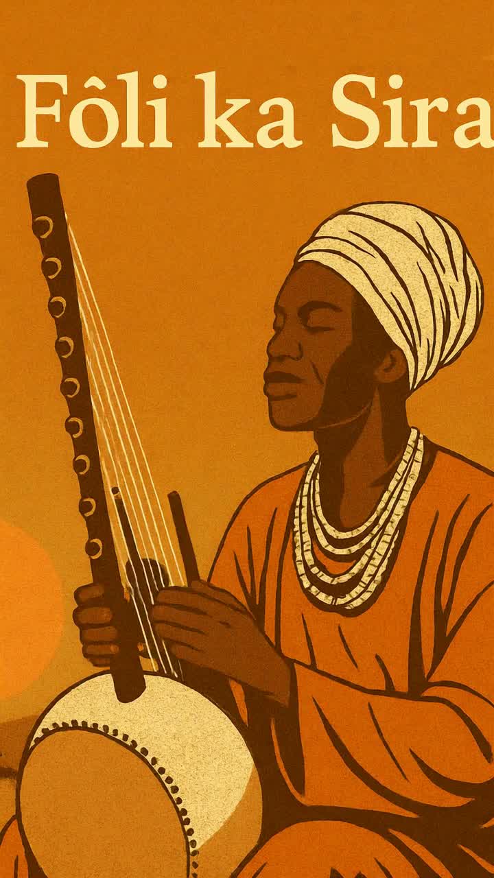 Folk / Traditionnel (souvent inspiré par la musique mandingue d'Afrique de l'Ouest, comme au Mali, au Sénégal ou en Guinée), on utilise souvent des thèmes comme la nature, les ancêtres, la sagesse et la transmission, Ambiance : Solaire, nostalgique mais rythmée, Instruments suggérés : Kora (harpe africaine), Guitare acoustique, Calebasse (percussion douce), Balafon