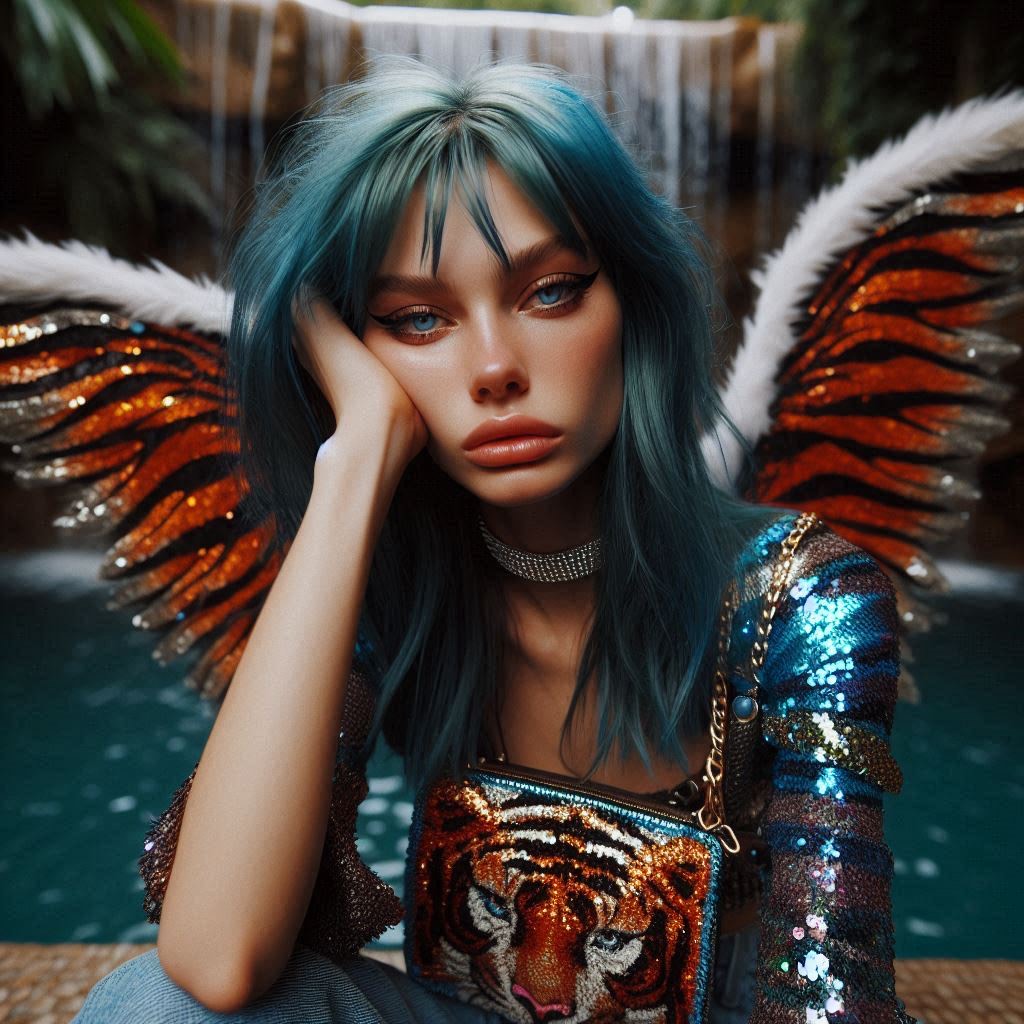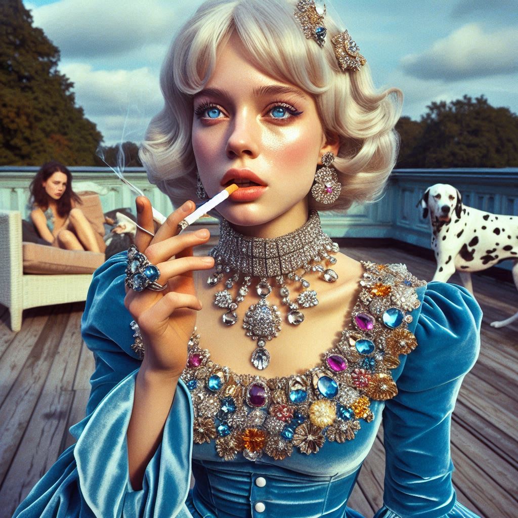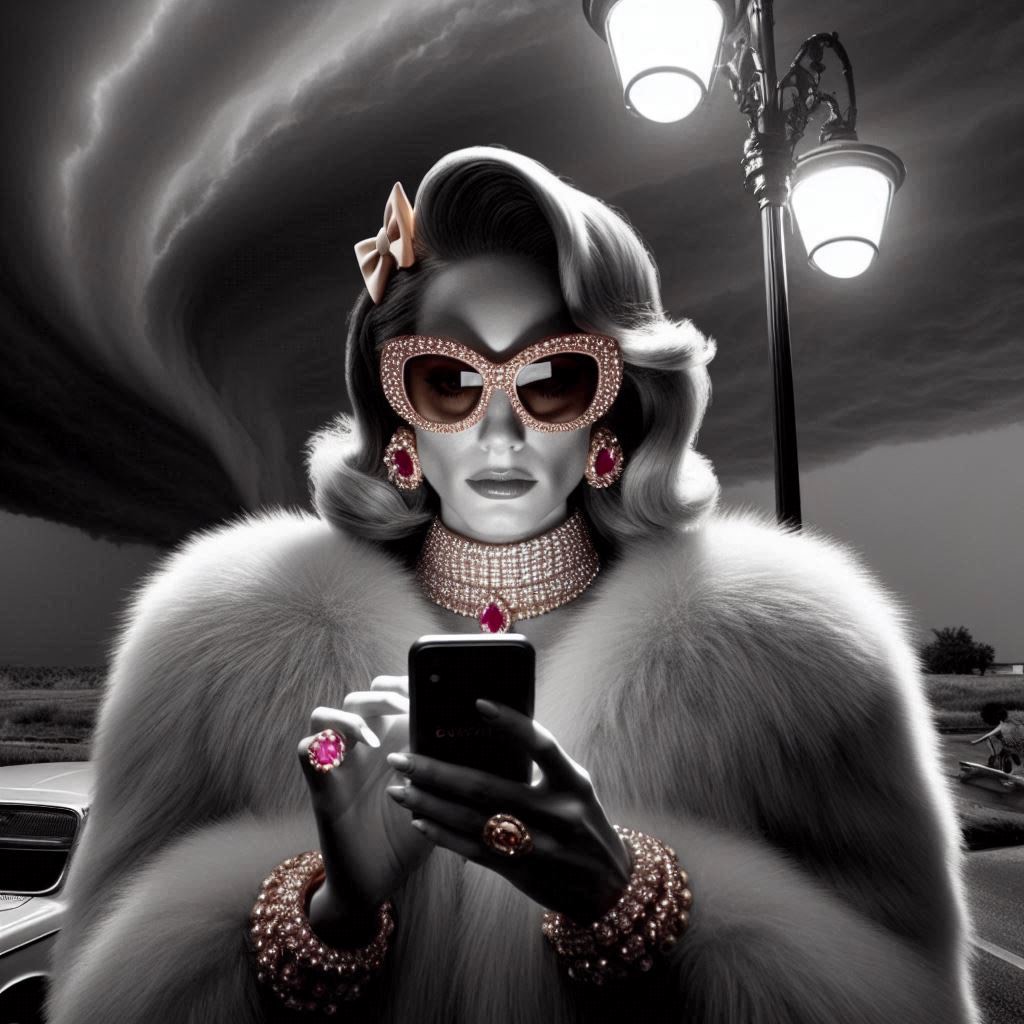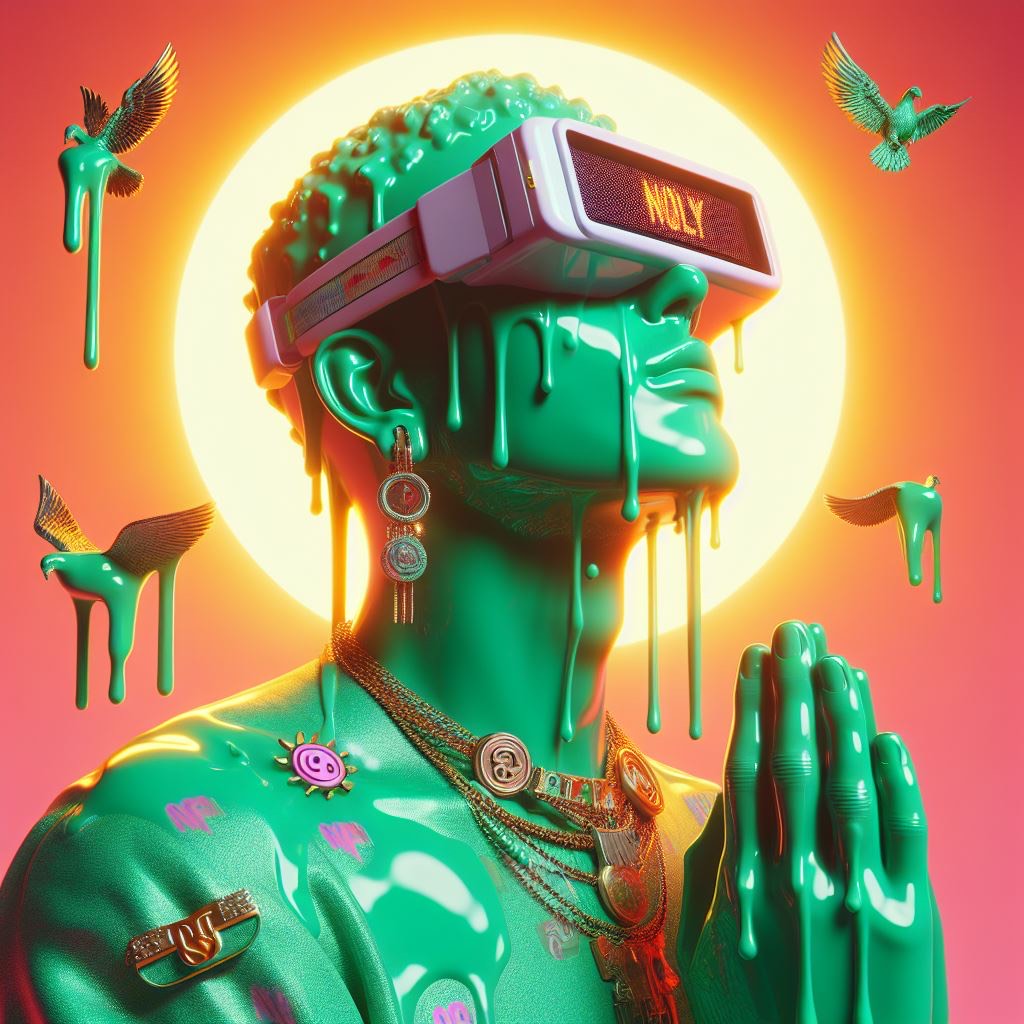 Cracked-vinyl drums wobble like old runway clips glitch-looped on VHS, loose but luxurious, champagne-sad, Bass hums warm & slouched, like velvet thrown over a broken speaker in a designer dressing room at 3AM, Horn stabs melt into dreamy Rhodes blur, smoky decadence in a brain that hasn’t slept in days but still feels divine, Vocal layers stack like thrift-couture fabrics, frayed genius stitched gold, Ad-libs float lazy, ironic, tender, Beat coughs, rewinds, laughs at itself, Patched-heart swagger, Cigarette-halo mind, Diary-on-silk, Late-night self-myth, beautiful & exhausted, but still shining like a cracked jewel under soft backroom spotlights