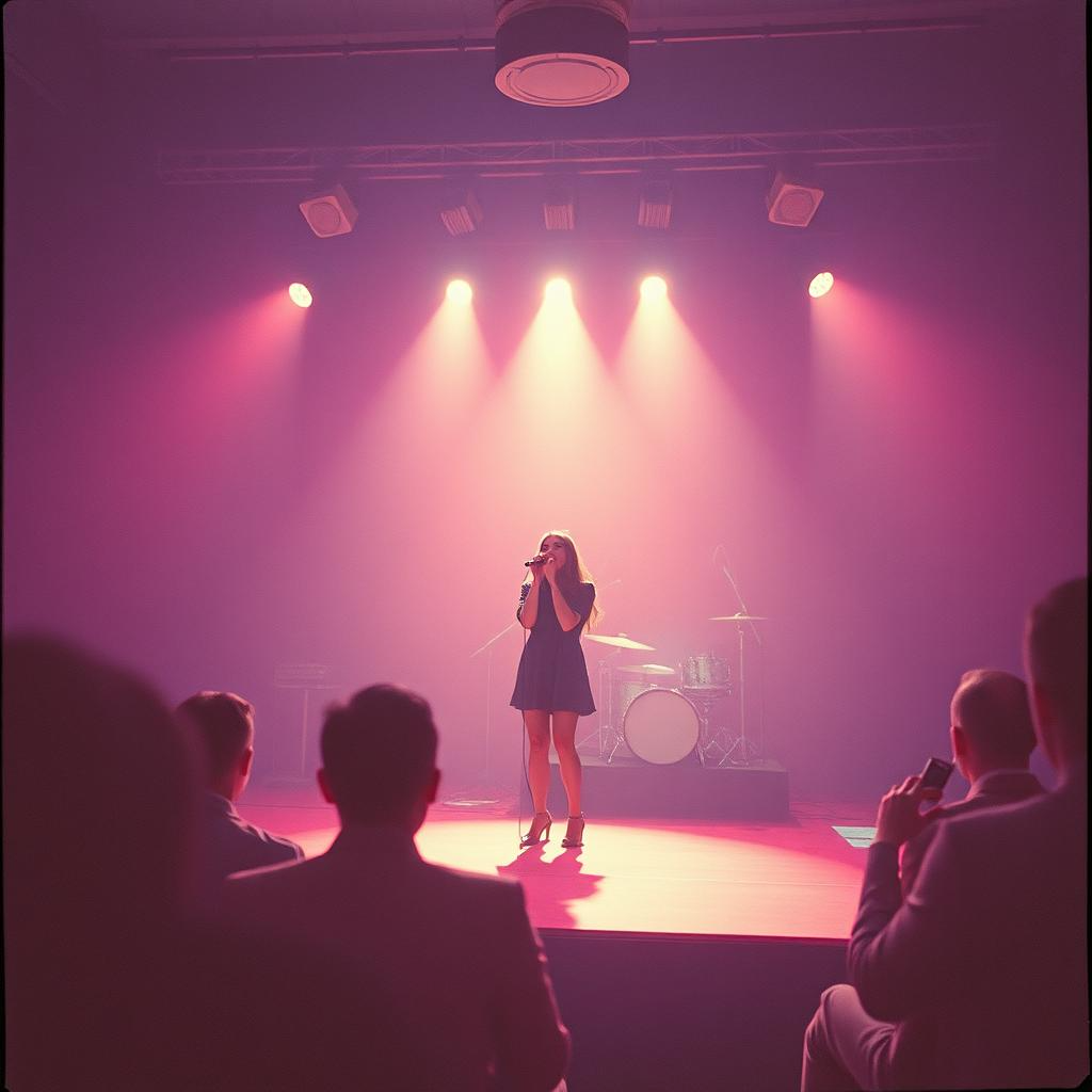 Techno, hard techno, neon, techno-pop, clear female vocal, hardbass, rave, feminine, catchy beats, bass riff, emotional female vocal, best quality, violin solo, live perfomance, live audience, live audio