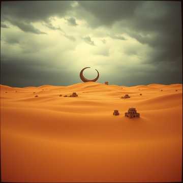 An epic medieval/Arabic-inspired game anthem at 92 BPM unfolds with a haunting oud motif over sand wind textures, Frame drums and war horns underscore a heavy march, as duduk melodies weave around layered strings, Deep female narrator vocals lead, accented by Arabic female chants, culminating in powerful mixed battle choir swells in the choruses for a cinematic climax