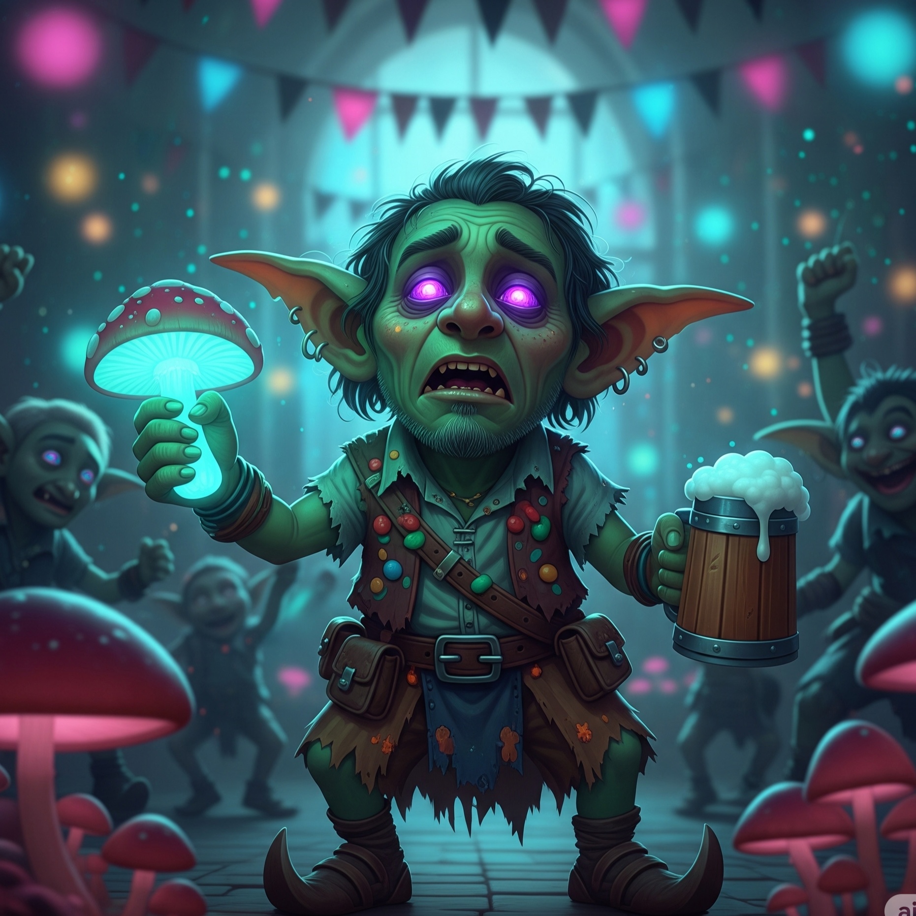 Goblin, EDM, Electro-Rock, Synth-Driven Melodies, Explosive Beat Drops, EDM, Dynamic Build-Ups, Dance floor-Ready, Dark, Quirky, hypnotic vocals, catchy, bouncy, quick shifts