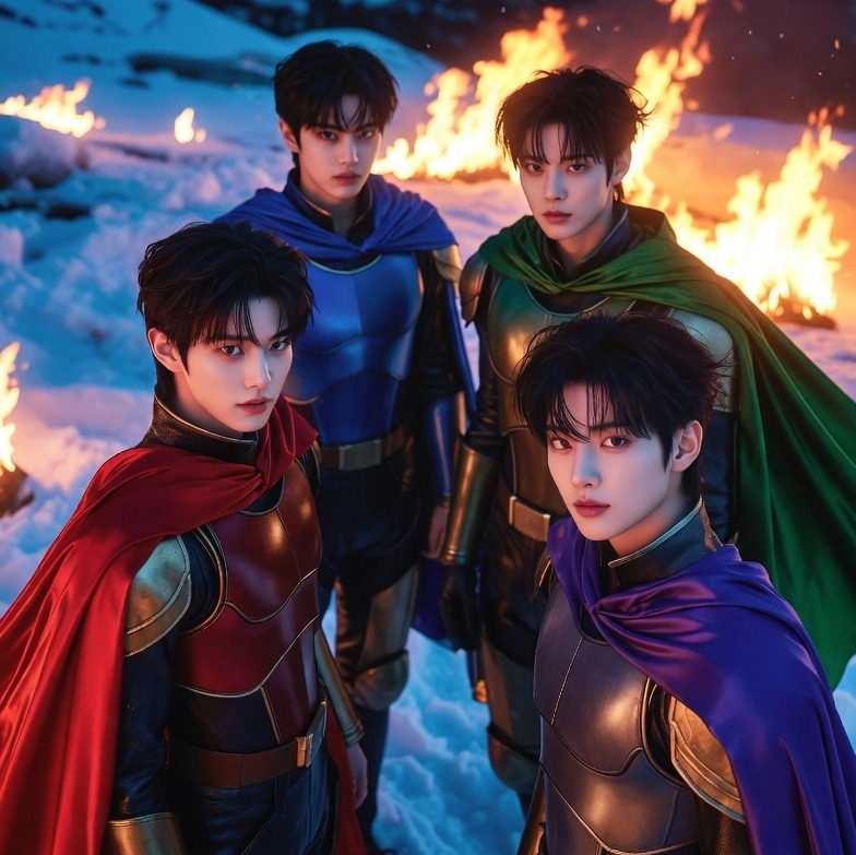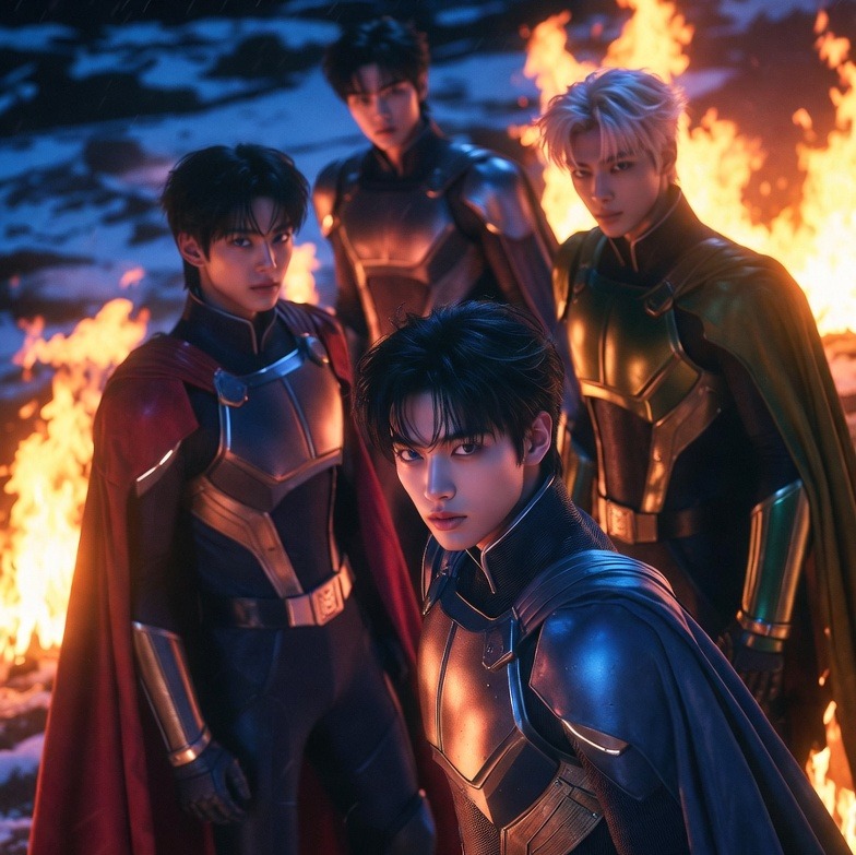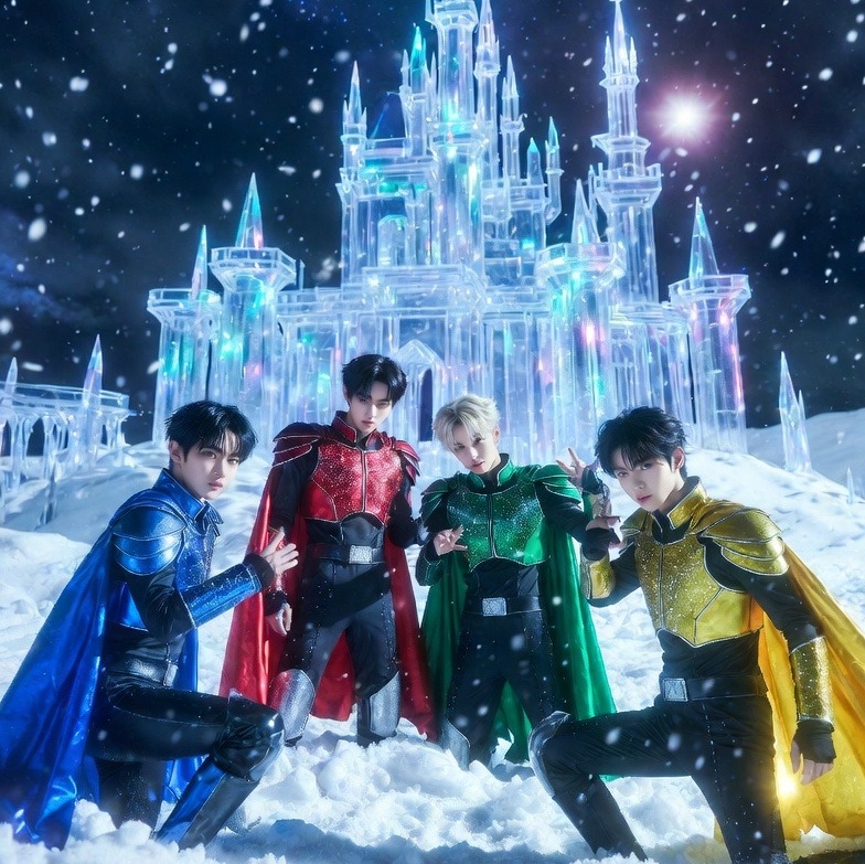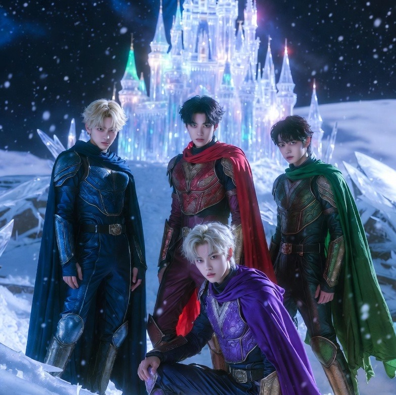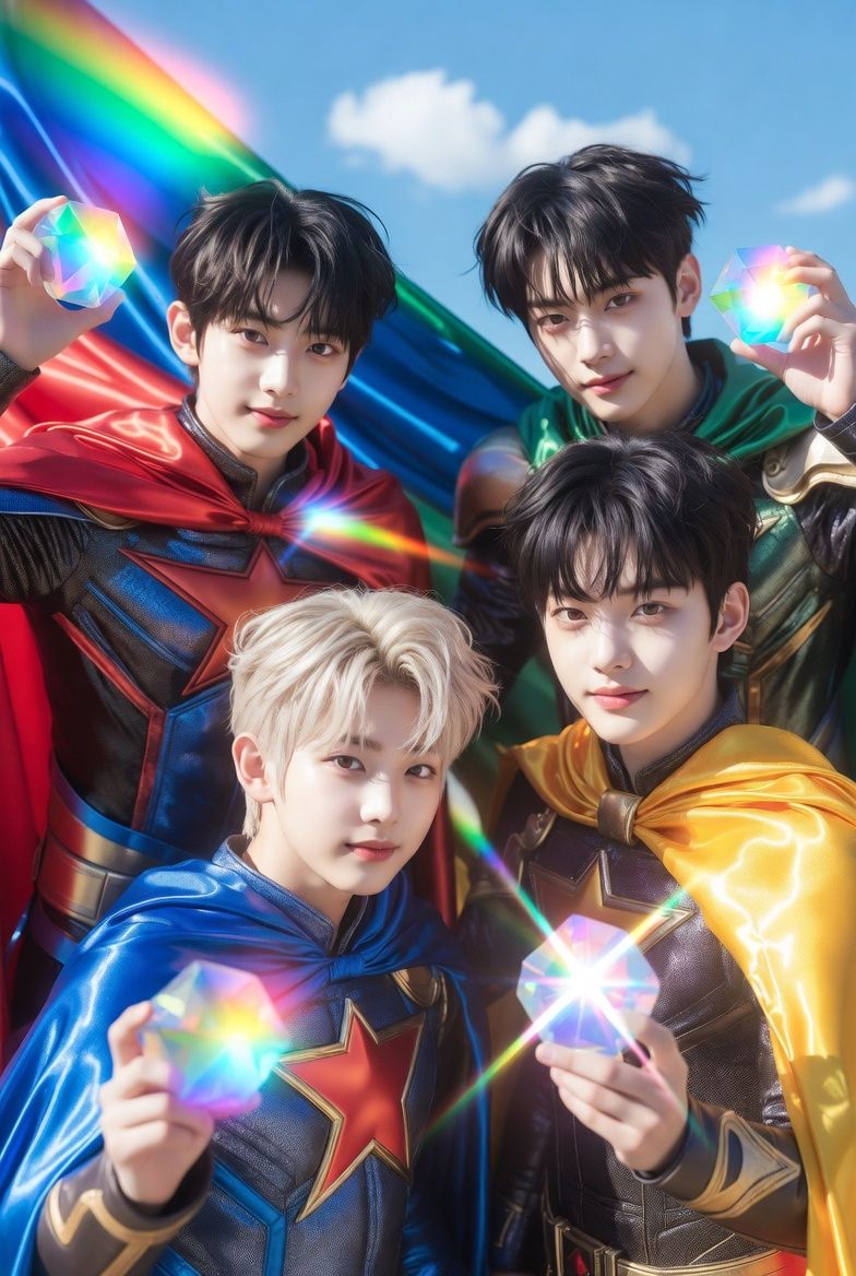 J-Pop Anime Opening, Magical Boy Theme, Fast Upbeat, Bright Sparkling Synths, Energetic Electric Guitar, Boy Group, 142 BPM, Young mâle vocals