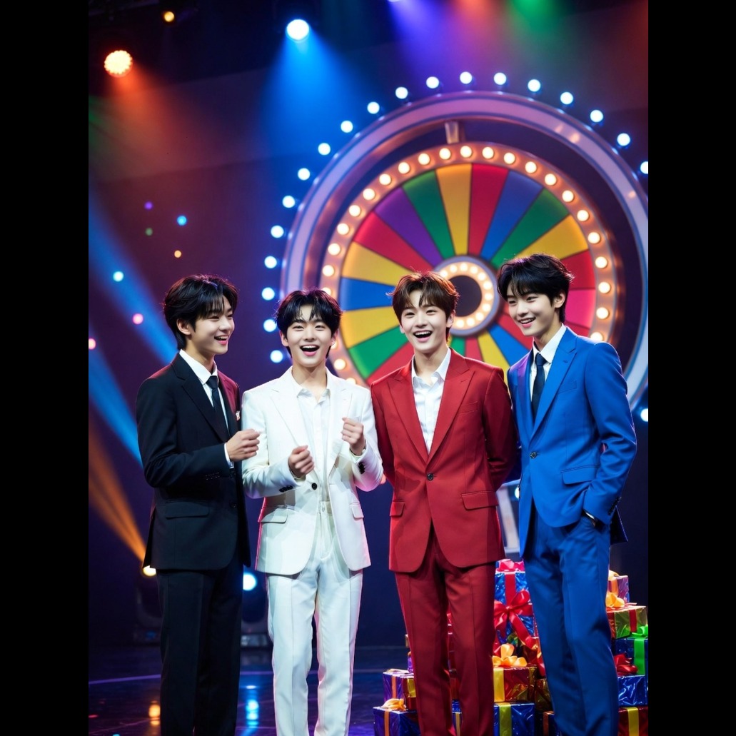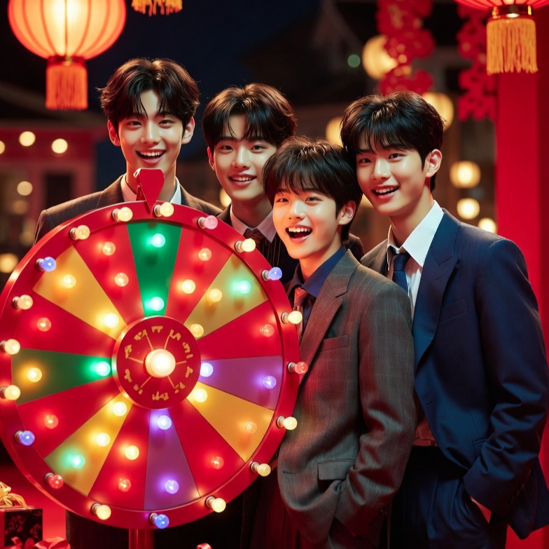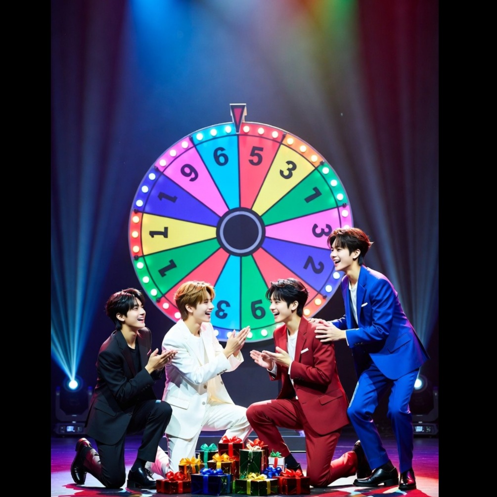 High-Energy J-pop, Boy-Group Style Male Solo, Fast Synth-pop, Driving Bassline, Sound of Spinning Wheel (Tick-Tick-Tick), Crowd Cheering SFX, Catchy Hook, BPM 145