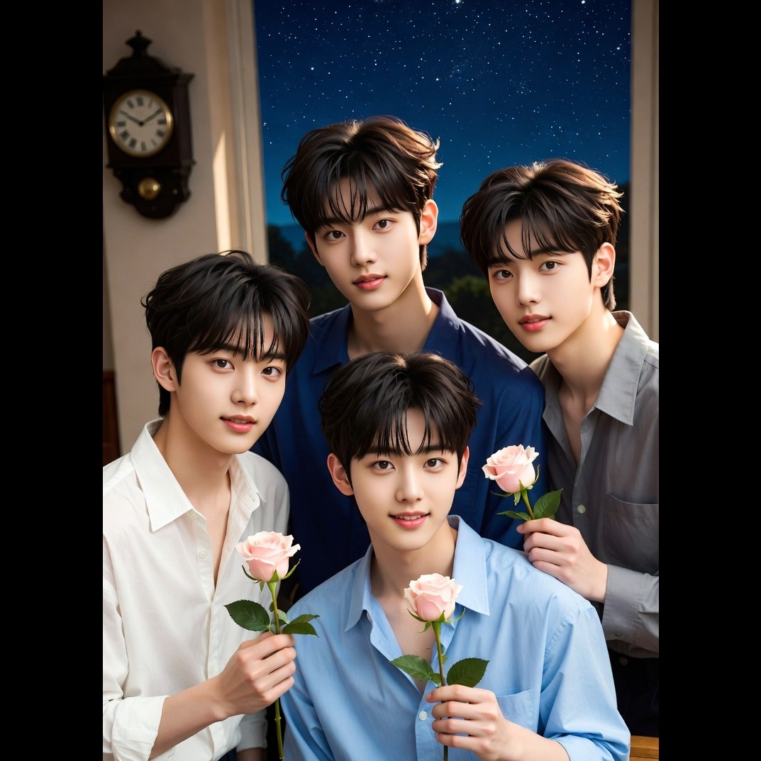 Mid-tempo R&B, Smooth Dance Pop, Sweet Boy Group, Smooth Vocal Harmony, Groovy Bassline, Light Synth, 100 BPM, Catchy Melody, Young male vocals