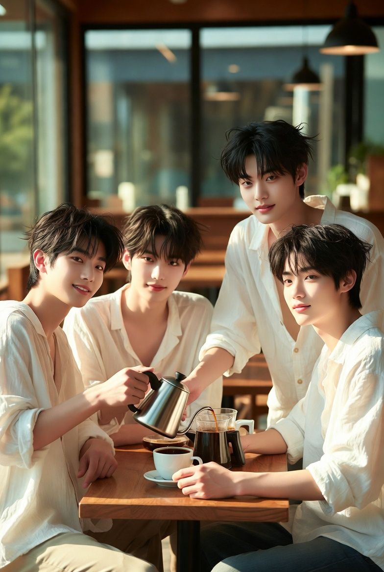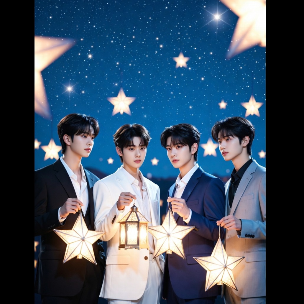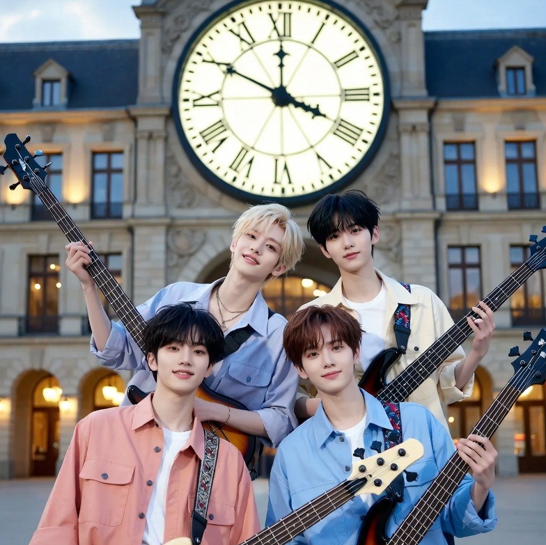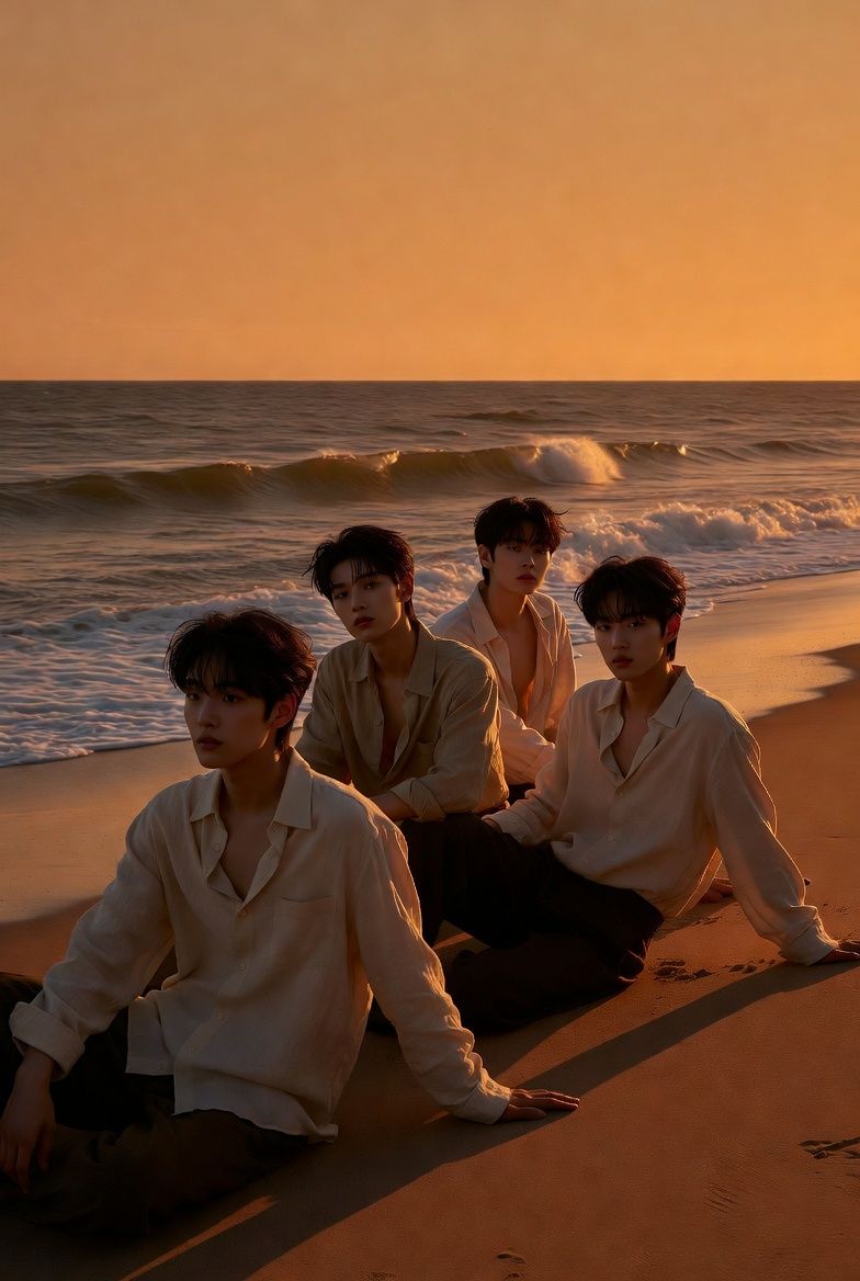 Smooth R&B Ballad, Young Sweet Boy Group, Mid-tempo Pop, Soft Vocal Harmony, Groovy Bassline, Acoustic Guitar, Romantic Sunset, 85 BPM