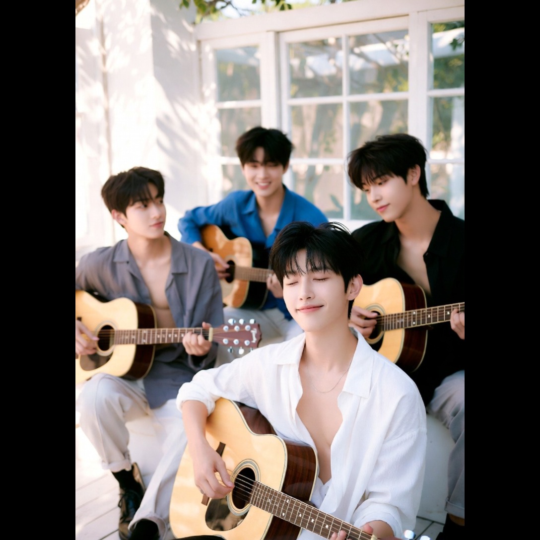Acoustic Pop Ballad, Sweet K-pop Boy Group, Warm Guitar, Gentle Piano, Bright and Sentimental, 76 BPM