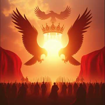 Epic orchestral hip hop, aggressive rap flow, majestic choir backing, loud brass section, hard hitting boom bap beat, dramatic, intense, lyrical masterpiece, climax