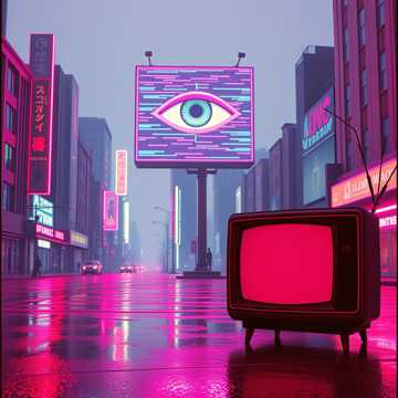 Synthwave cyberpunk, driving electronic beat, robotic vocal effects, futuristic synthesizers, dark atmosphere, sci-fi vibes, dystopian, mid-tempo