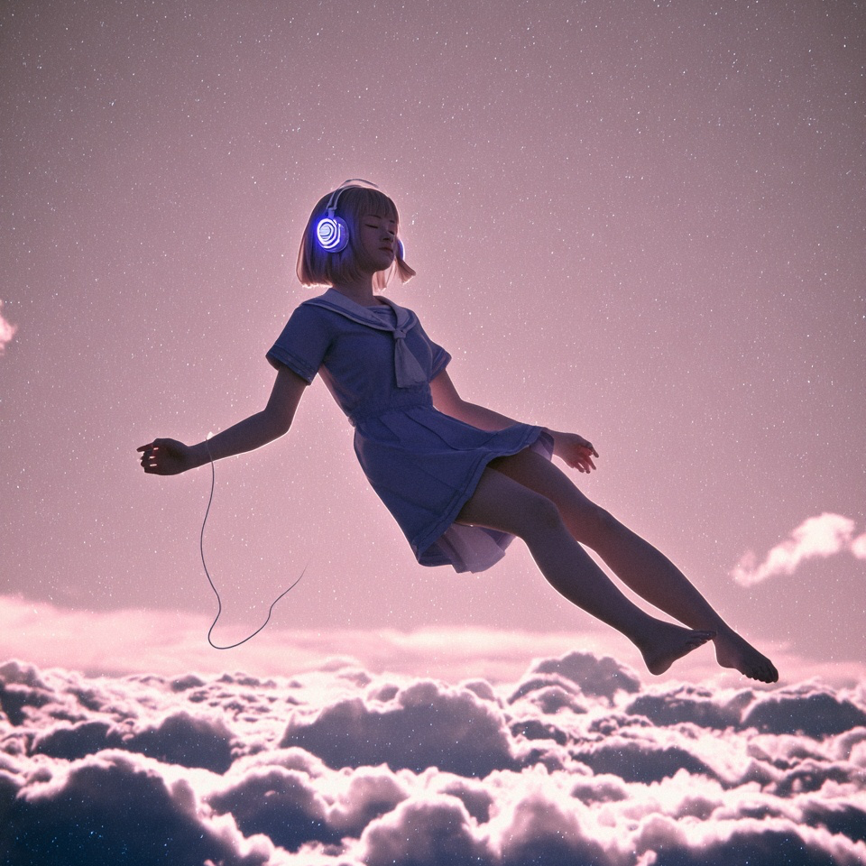 kawaii lofi digital pop with whisper female voice, dreamy and sleepy atmosphere, chill hip hop beat, soft lo-fi textures, sparkly synths, light percussion, floating and dreamy mood, relaxed tempo, kawaii and mysterious vibe