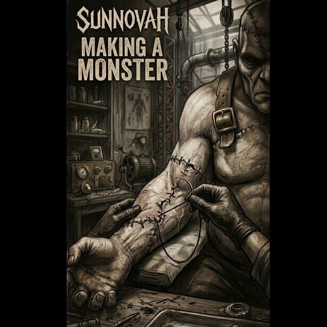 rap, Hybrid industrial dubstep/trap with male vocals: cold mechanical ambience and distant choir pads in the intro, then serrated bass growls layered over halftime trap drums and metallic hits, Verses stay sparse with whispered doubles and subtle reverb tails; chorus swells into orchestral strings, big brass stabs, and a towering sub, Occasional glitchy fills and reverse impacts lead into a widescreen cinematic outro that leaves the vocal hanging in space, dubstep, male vocals, orchestral, industrial