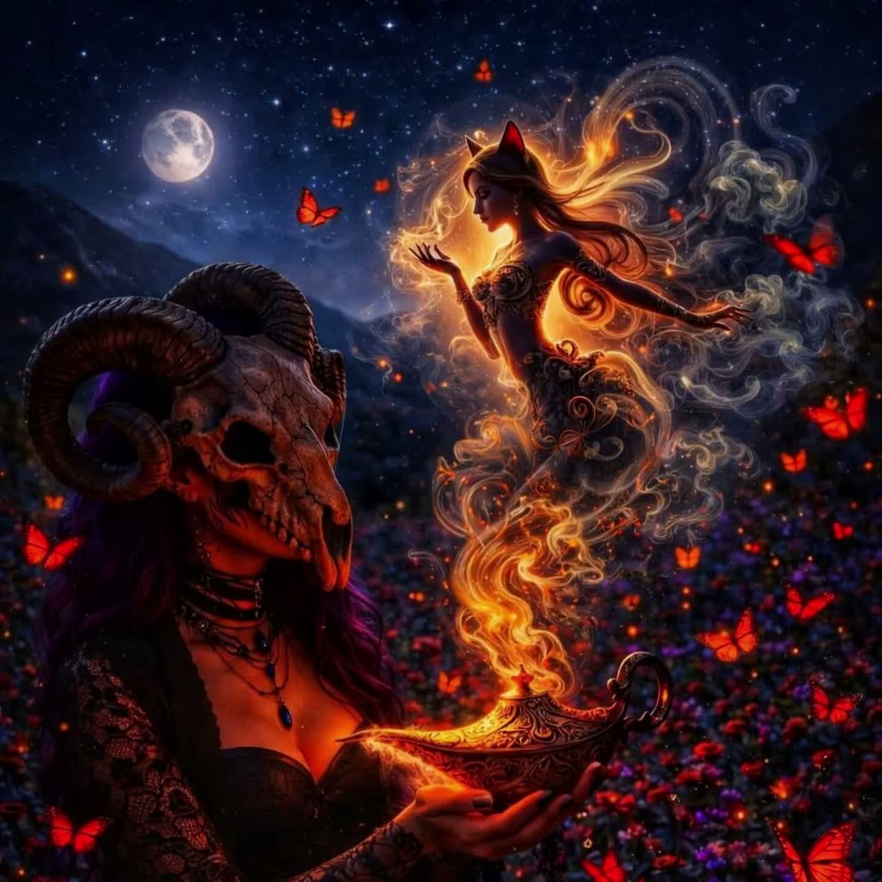 Vocals: Contralto lead (smoky, sovereign), falsetto shadow harmonies phased wide; ad-libs drenched in cathedral reverb (“rise… burn… remember…”)