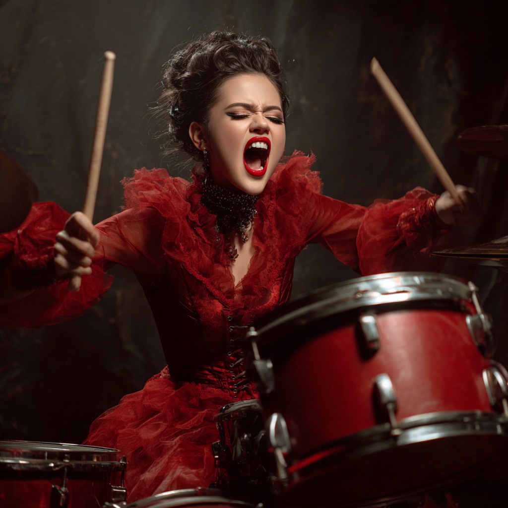 An experimental a cappella and vocal percussion track centered around a rhythmic, beatboxed ostinato, The foundation consists of a repetitive 'boom-chak-a-boom-chak-a-boom-dash-a-chak' vocal pattern that mimics a drum kit with a heavy kick and crisp snare, Layered over this are various vocal textures including sharp 'shh' sounds, rhythmic 'ts-ts' hi-hat imitations, and melodic humming, The piece features dramatic dynamic shifts, incorporating sudden crescendos, vocal slides, and percussive 'brrr' rolls, High-pitched, operatic female vocal flourishes provide a melodic contrast to the rhythmic base, reaching soaring heights with vibrato, The production is clean and dry with subtle reverb to enhance the spatial depth of the vocal layers, The tempo is a steady 120 BPM, maintaining a driving, energetic feel throughout