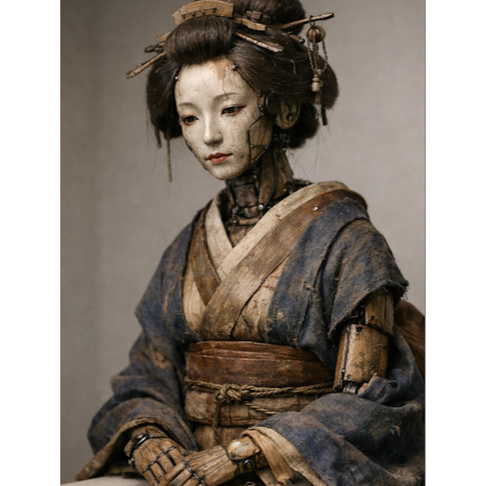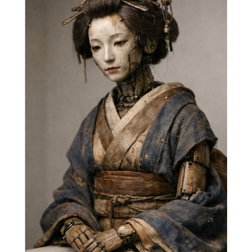 Subtle electronic pulse beneath, restrained breakbeat tension, Gradual build from stillness to controlled intensity, chaos beats, Free-jazz shakuhachi improvisation, raw but muted, sometimes exploding, Feeling of quiet impact, unseen fractures, beauty under pressure, A calm but ominous atmosphere, quiet tension that never resolves, the sense that the dark is never empty, Low blood pressure, slow pulse, controlled breathing — beneath it, something listening, Soft damage, persistent and internal, unresolved, A meditative surface carrying unease, shakuhachi tones drifting like breath in a dark room, addictive and circular, mantra-like, The city after a blackout: night collapsing inward, streetlights flickering back on as cold halos over wet asphalt, reflections trembling, Windows glow briefly, then go