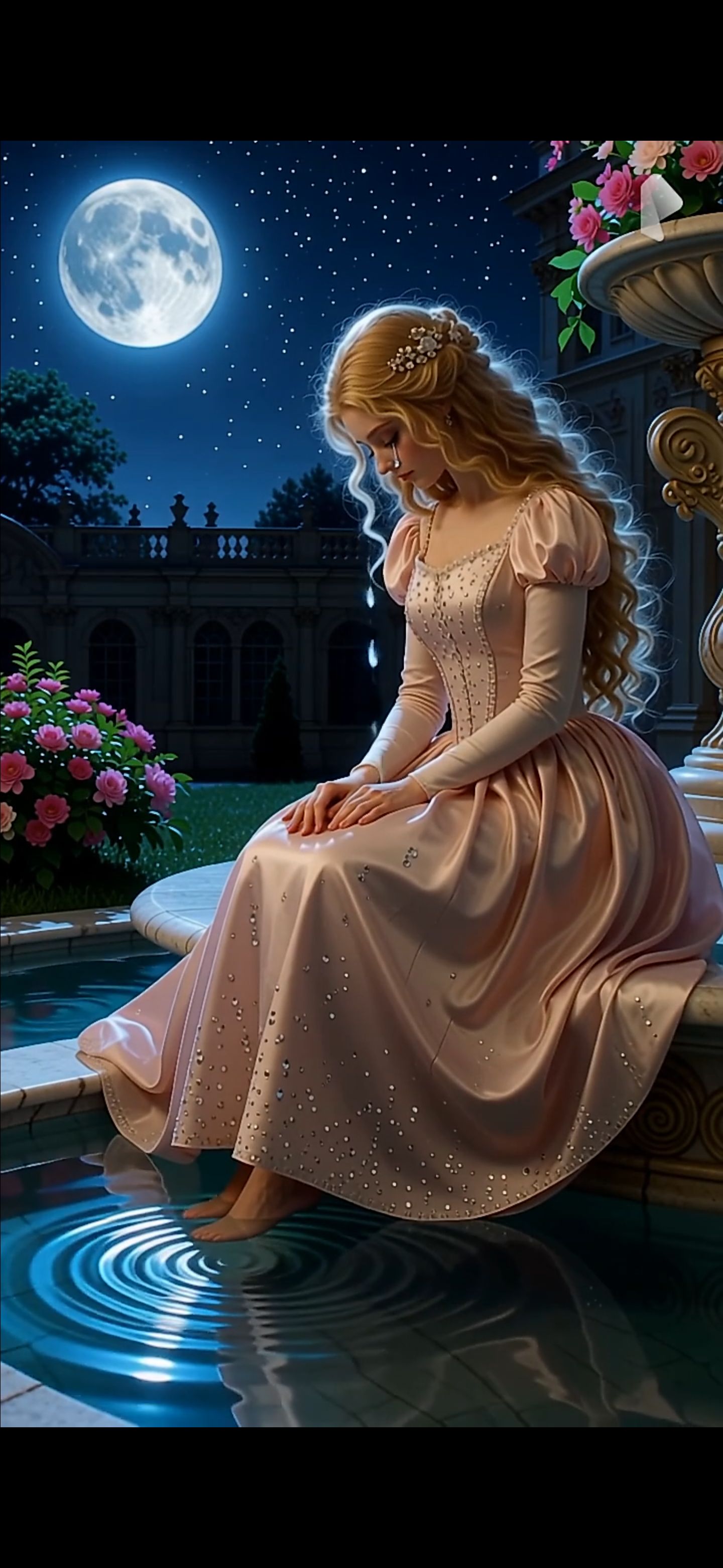 Mood: Elegant, magical, playful, exotic – like a palace dance at sunset, Tempo: Moderato (BPM 95–100), graceful but lively, Instruments: Oud, Kanun, light percussion (Darbuka, Riq), soft strings, optional harp/glass chimes, Vocals: Clear, confident, slightly playful, princess-like tone; expressive with subtle Middle Eastern ornamentation, Feel: Lush and exotic, yet approachable; conveys passion and elegance in a short, catchy style