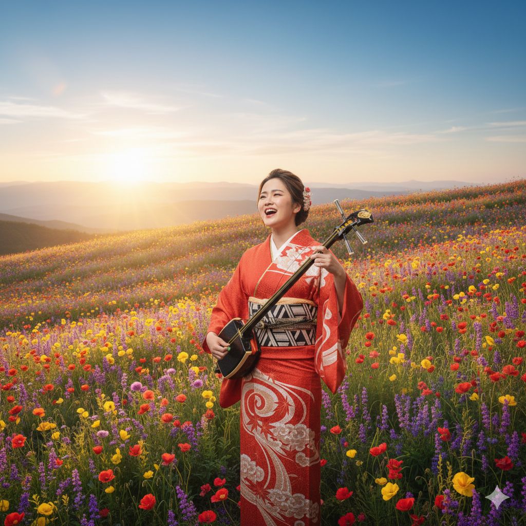 “Elegant, peaceful, traditional Japanese moment expressed through minimal acoustic texture
