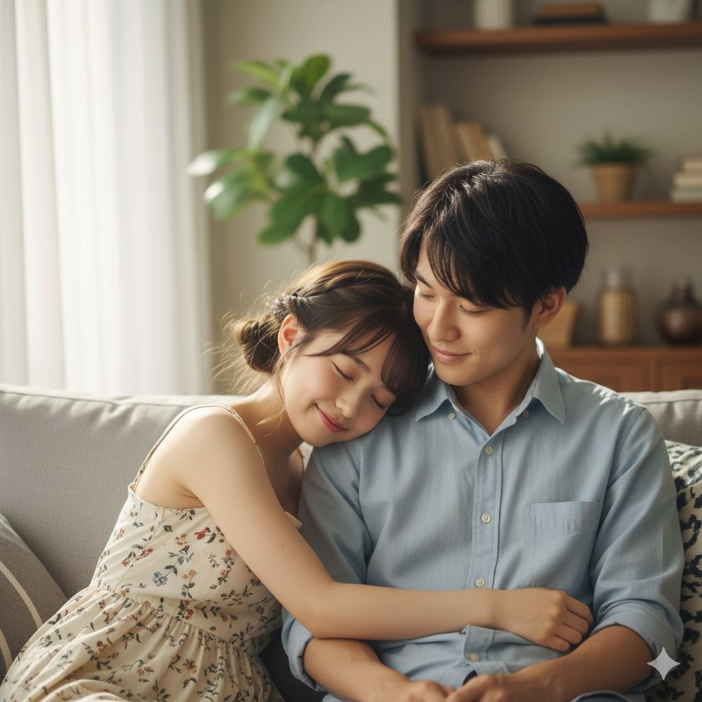 Create a cute, gentle Japanese pop ballad with soft, sweet female vocals, Mood: warm, cozy, heart-fluttering, Imagine a couple taking a slow walk through colorful autumn leaves, Use light instruments such as toy piano, soft bells, acoustic guitar, warm piano, soft strings, and gentle brushes, Include a fluffy, heartwarming atmosphere—like sunlight through orange leaves, The song expresses a calm, mature love that feels safe and comforting after past heartbreaks, Keep the vocals soft, pure, and slightly playful, as if smiling while singing, Tone should be bright, cozy, and emotionally warm, with a cute pop aesthetic