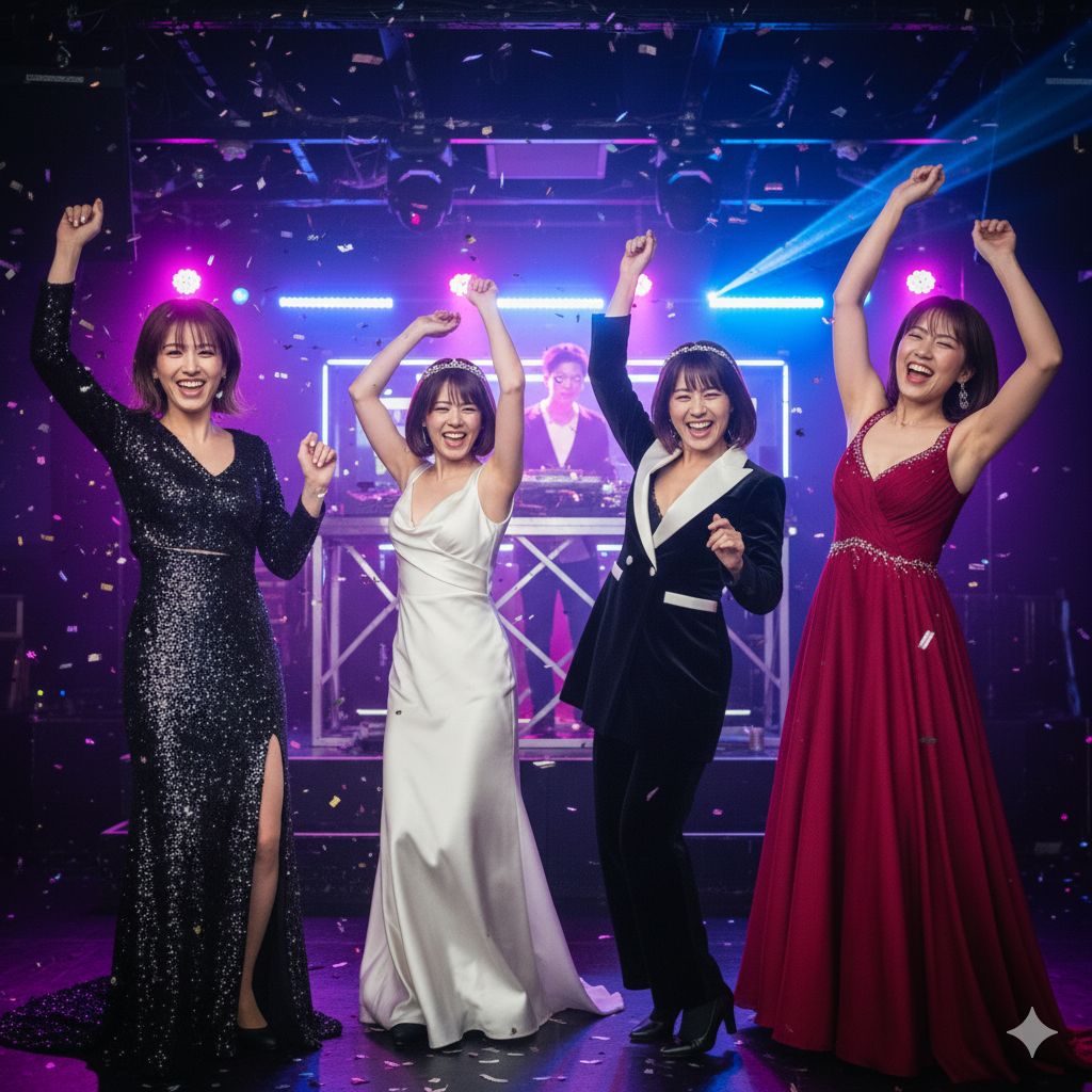 Create a bright, upbeat, and energetic pop song with a catchy, danceable rhythm reminiscent of a high school or young adult party vibe, The theme is: the workweek is over, and everyone is ready to celebrate and have fun, Friends gather, pop champagne, play their favorite music, forget their worries, and dance all night, The song should have a fun, explosive chorus, playful pre-chorus, and verses that build anticipation and excitement, Include moments of call-and-response or group singing to enhance the party atmosphere, Express feelings of freedom, joy, celebration, and a sparkling, glamorous night, No proper nouns or references to specific brands, songs, or people, Mainly in English, but you may sprinkle in a few simple Japanese phrases for extra flair, Keep it catchy, memorable, and full of youthful, high-energy vibes suitable for a Glee-style musical performance