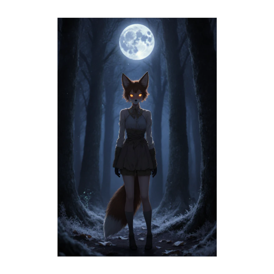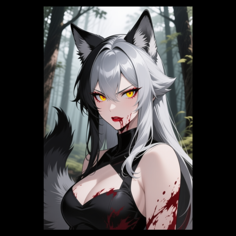 Vocals: strong and intense female vocals with melodic phrasing and emotional delivery, blending human passion with lupine ferocity