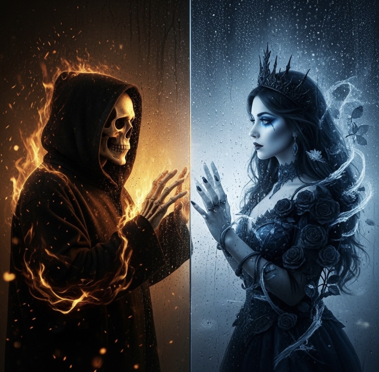 Cinematic dark rock ballad with raw intensity and tension, Slow-to-mid tempo, Intro with cold electric guitar, subtle distortion, atmospheric pads, faint whispers and echoing reverb, Male lead voice: deep, husky baritone-tenor, raw, emotional, tense, gritty; harsh breaths, cracks, whispered lines, Layer female backing vocals: breathy whispers, ghostly harmonies, occasional soft screams in chorus, Verses intimate and close with shaken, broken tone, Chorus explosive: heavy electric guitars, distorted edges, punchy drums, layered whispers behind the main vocal, echoes breaking in stereo, Interlude guitar solo with tremolo and rising distortion, cinematic tension, Bridge darker, strained, emotional, atmospheric, Outro fade with dissolving guitars, pads, whispered lines fading into reverb, ending cold and haunting, Dark rock, raw, electric, echoing, intense, whispered + screamed delivery