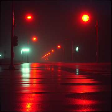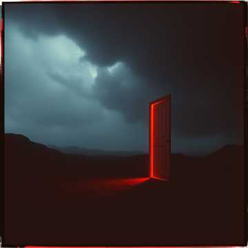 [Imagery: storm, broken light, blood-red sky, open door gl