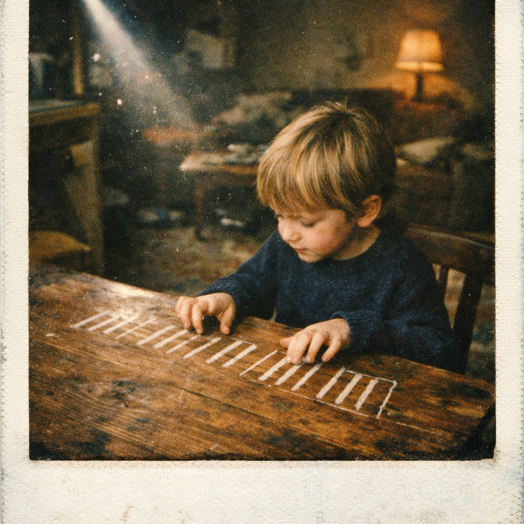 Warm indie-pop ballad with male vocals, close-miked and intimate, Fingerpicked acoustic guitar and soft piano under sparse, airy drums, Verses stay hushed and close to the mic; chorus blooms with stacked harmonies, subtle synth pad, and a low, round bass, Gentle build into a final, slightly bigger chorus, then taper off to almost a whisper on the last line