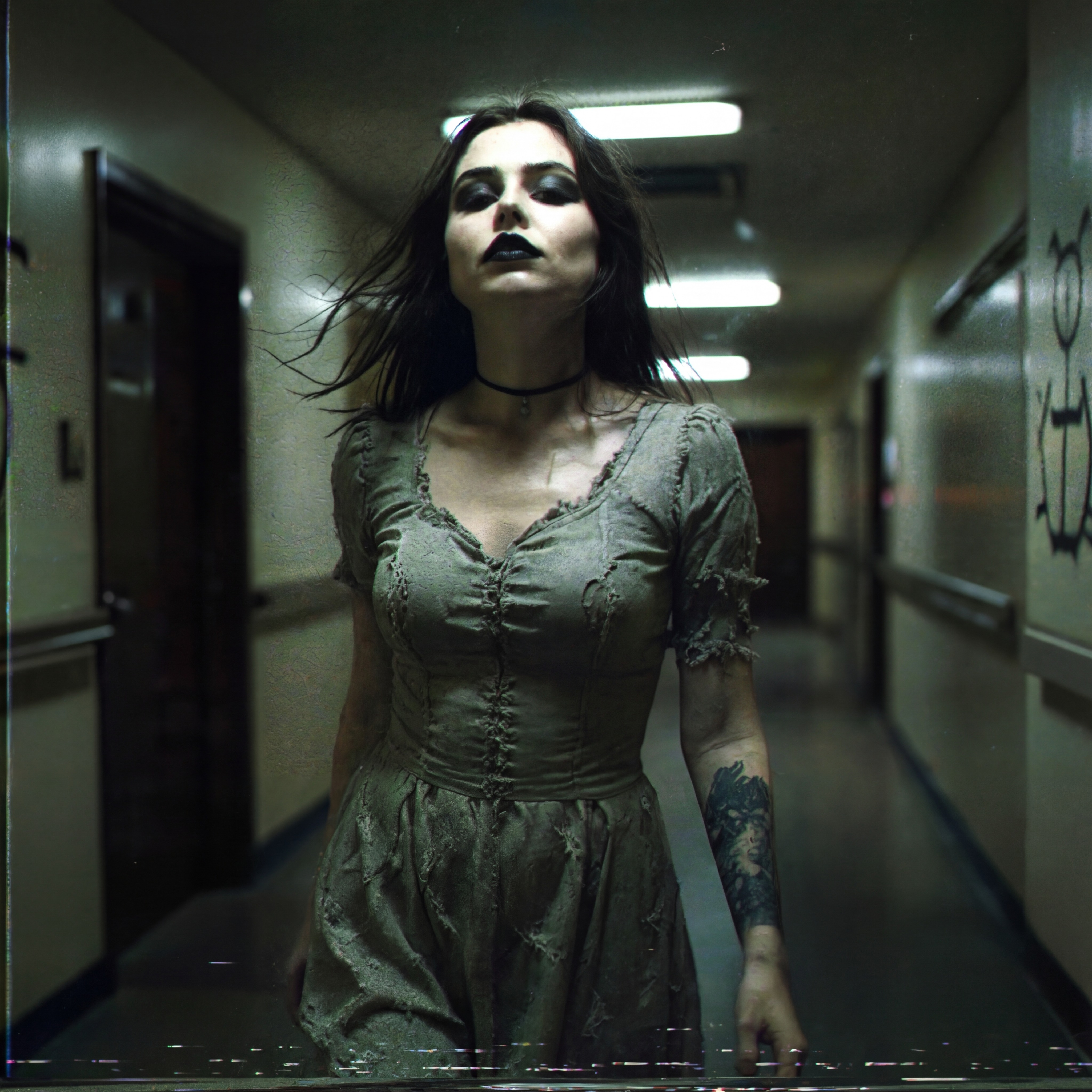SG-driven crunch—palm-muted lows, razor mids, dense low-mid weight—while a tube-warmed bass pushes from deep 8x10 space, Maple drums ride a loose, human groove, adding friction and breath, It lands between 90s grunge, death rock, and shock rock, surging from coiled tension into explosive peaks and haunted breakdowns, A low-register female vocal cuts through with a gritty, intimate rasp, Production leans analog and mid-forward, preserving raw transients and room bleed, ‑Dub step, ‑industrial, ‑electronica, ‑synths, ‑drum machine