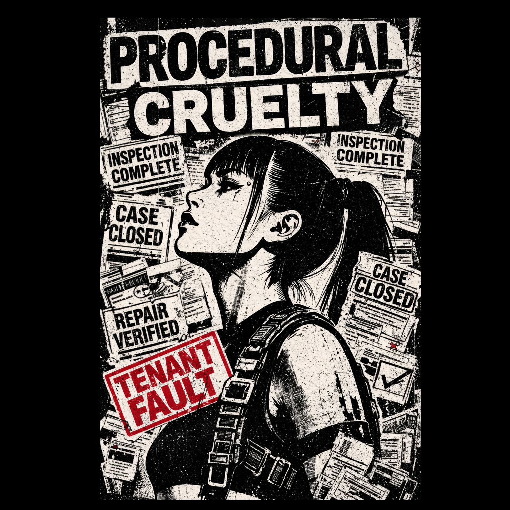 Raw heavy 90s grunge with sludge weight and punk urgency, Emotionally cracked male vocal, close-mic trembling in verses, breaking into shouted desperation in choruses, Drop-tuned distorted guitars: thick grinding riffs, jagged muted picking in quieter sections, Bass loud, dirty, oppressive and simple, Drums primitive and heavy, driving kick/snare with chaotic fills only at emotional peaks, Production unpolished, room-like, noisy realism with feedback edges left intact, Mood: panic attacks, claustrophobia, teenage trauma, guilt, anti-establishment dread, Dynamic contrast: whispered confession → explosive collapse → bleak exhausted outro, Avoid glossy modern sheen, avoid overproduction, avoid clean metal tightness