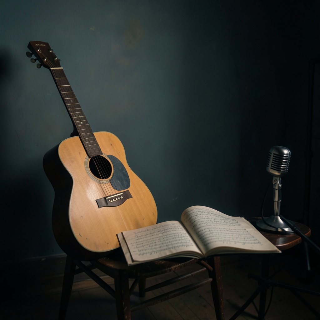 Indie folk acoustic metal ballad featuring a fingerstyle acoustic guitar as the primary accompaniment, The track is set in a 4/4 time signature at a moderate tempo of approximately 85 BPM, The guitar utilizes a repetitive, arpeggiated picking pattern with a bright, crisp tone and subtle reverb, The vocal performance is a soft, breathy male tenor with a gentle, intimate delivery, characterized by slight vibrato on sustained notes, The song structure follows a linear progression with a focus on storytelling, The production is clean and minimalist, emphasizing the natural resonance of the acoustic guitar and the clarity of the vocals, The harmonic structure is built around a simple, melancholic chord progression in a minor key, creating a reflective and somber atmosphere
