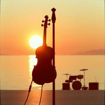 solo guitar electric and piano warms the soul; embrace of violin and low background orchestra; buildup of the combination of passion as the orchestra rises and the rhythm flows gently in steps; as the sun rises to greet the music the guitars solo brings drums to accompany the orchestra and bass to fade; female vocals, electric, low, violin, soul