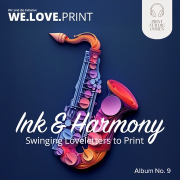 Upbeat Big Band swing at 126 BPM featuring full brass section (trumpets, trombones, saxes), marching snare, upright bass, piano, and clarinet, Duet vocals (female/male) with playful phrasing and call-and-response structure, Lyrics celebrate the sensory joy and community power of print, using vivid metaphors and wordplay (gloss, spine, ink, CMYK), Incorporates parade motifs, New Orleans flair, and Broadway-style crescendos, Designed to close the jazz album with a danceable, euphoric anthem, Ends with crowd chants and a strong branding tagline: “We, Love, Print, ” Perfect for stage finales and print industry celebrations