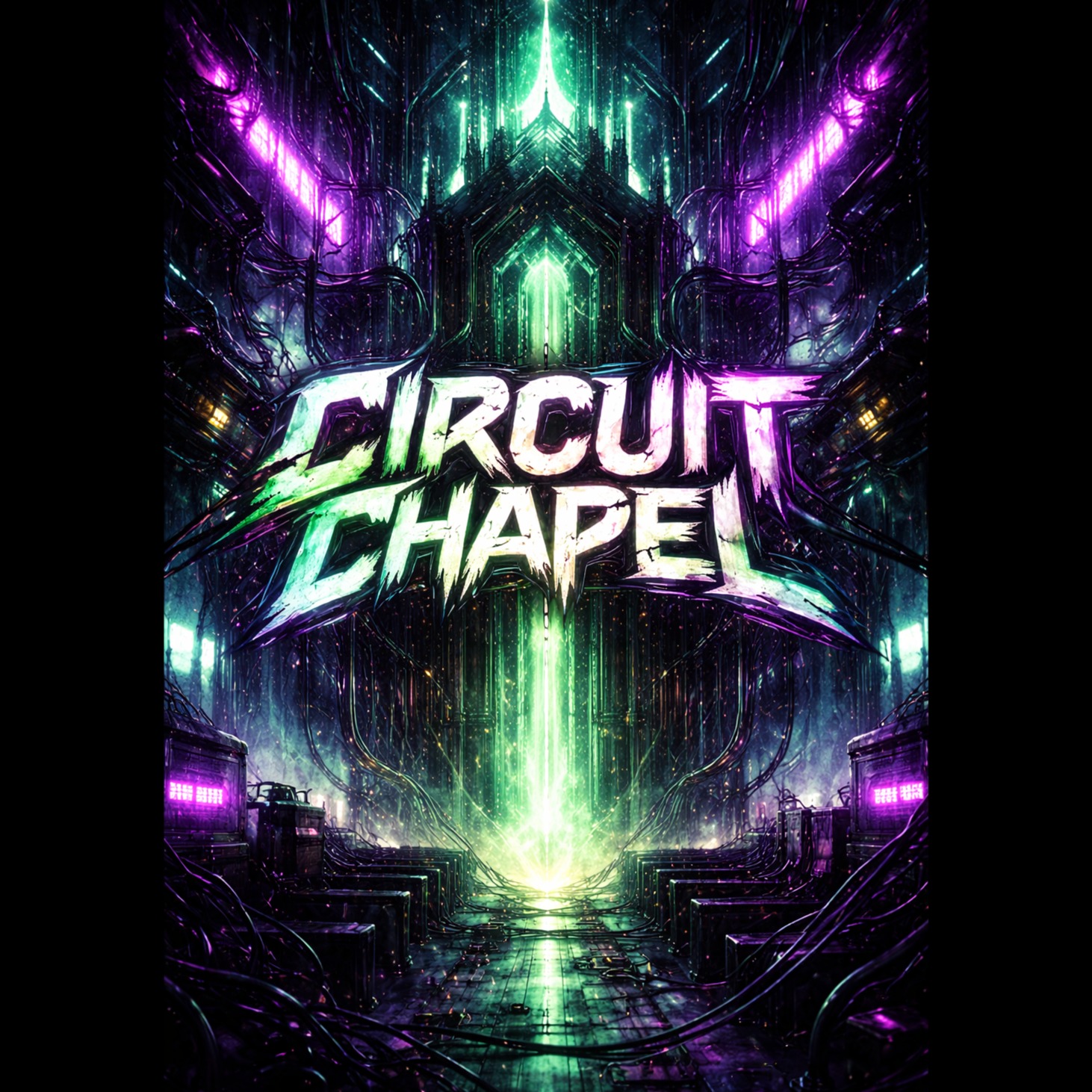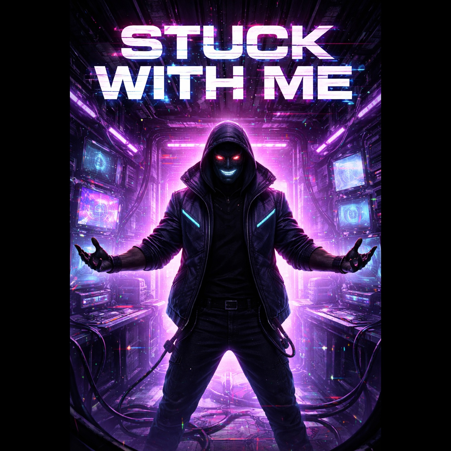 cyberpunk rock, distorted guitars, glitch effects, aggressive male vocal, rap verses, shouted chorus, dark futuristic atmosphere, high energy