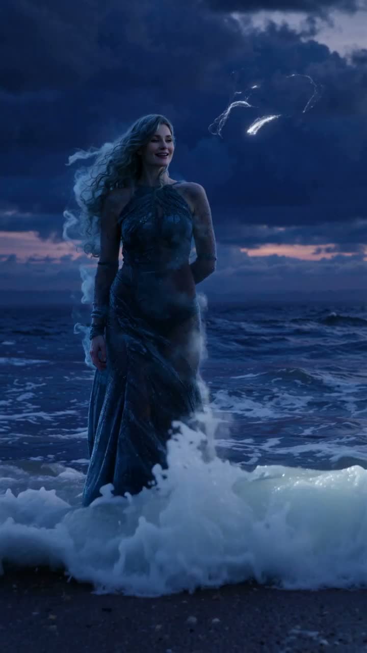 Primitive Nordic–Celtic shoreline lament, Start in Aeolian, shift toward Phrygian as destruction approaches, Meter: slow 5/4 for the main verses, drifting toward free-time when the singing woman appears, Instrumentation: skin drums, bowed lyre, low flute wavers, shell-horn blasts, ocean-drum textures, Atmosphere: rising water, distant quake-rumble, storm muffled by Brume, Tone: sacred, terrified, awe-struck — not heroic