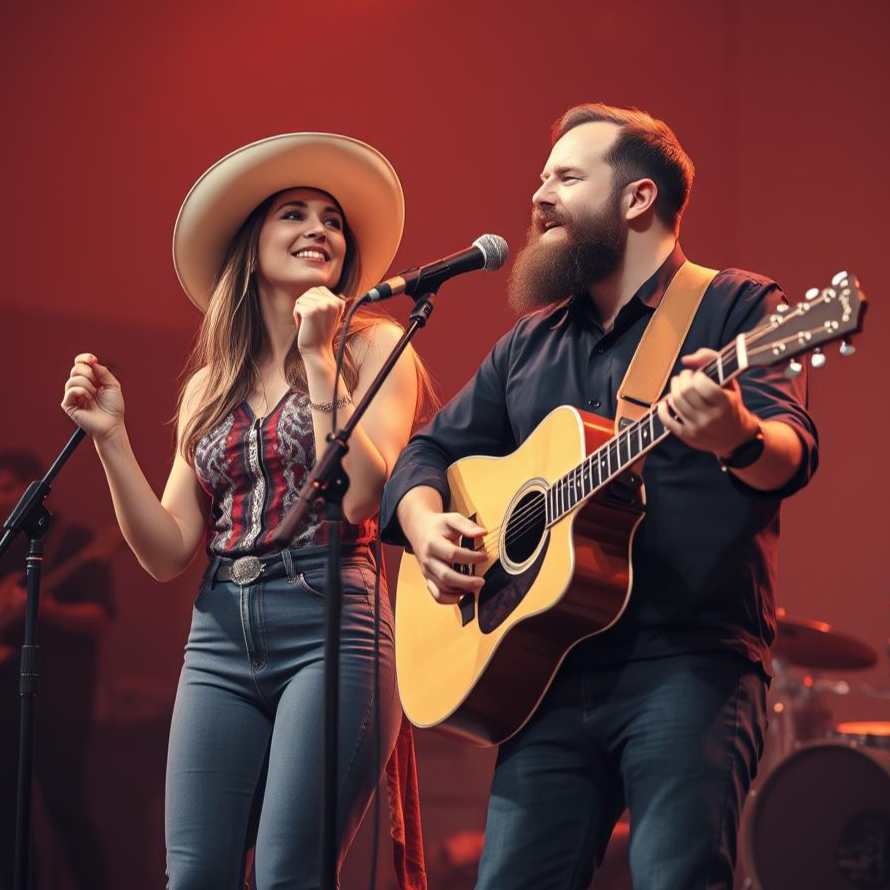 Country rock, electric guitars, strong drum beat, male and female vocals taking turns, Duet in the chorus, Happy rock, Southern drawl accent, Clear voices, clear master