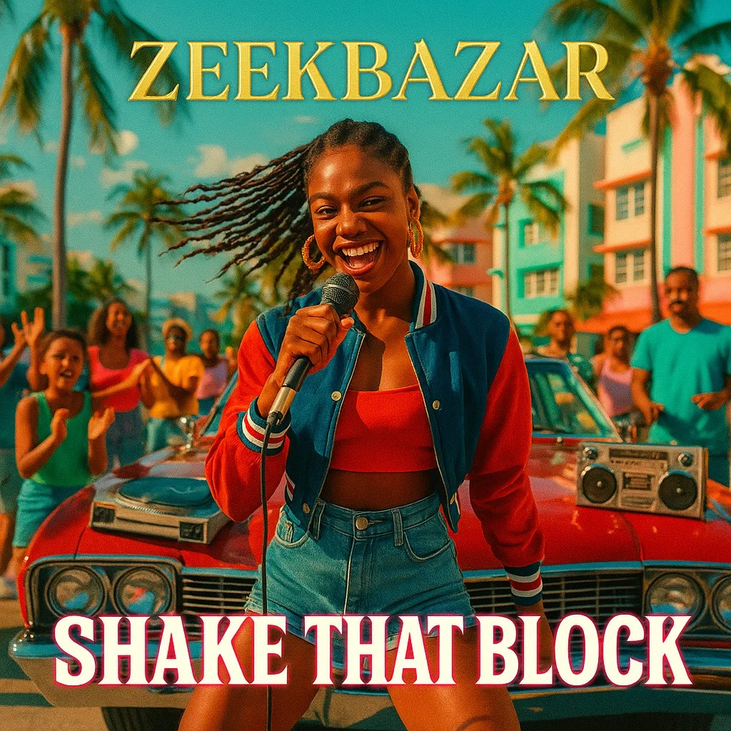 A playful 1980s Miami Bass track full of swagger, built on booming 808 drums, elastic bass, and syncopated claps, The production should sound raw and vibrant, made for open streets, convertibles, and block parties under palm trees, The lead vocal is charismatic and teasing, full of rhythm and humor, while crowd chants and female responses add flirtatious tension, The groove is fast, bouncy, and sun-drenched, with bright synth stabs and short talkbox phrases, The overall atmosphere is fun, confident, and mischievous — a celebration of rhythm, attitude, and street charm that makes the whole neighborhood move