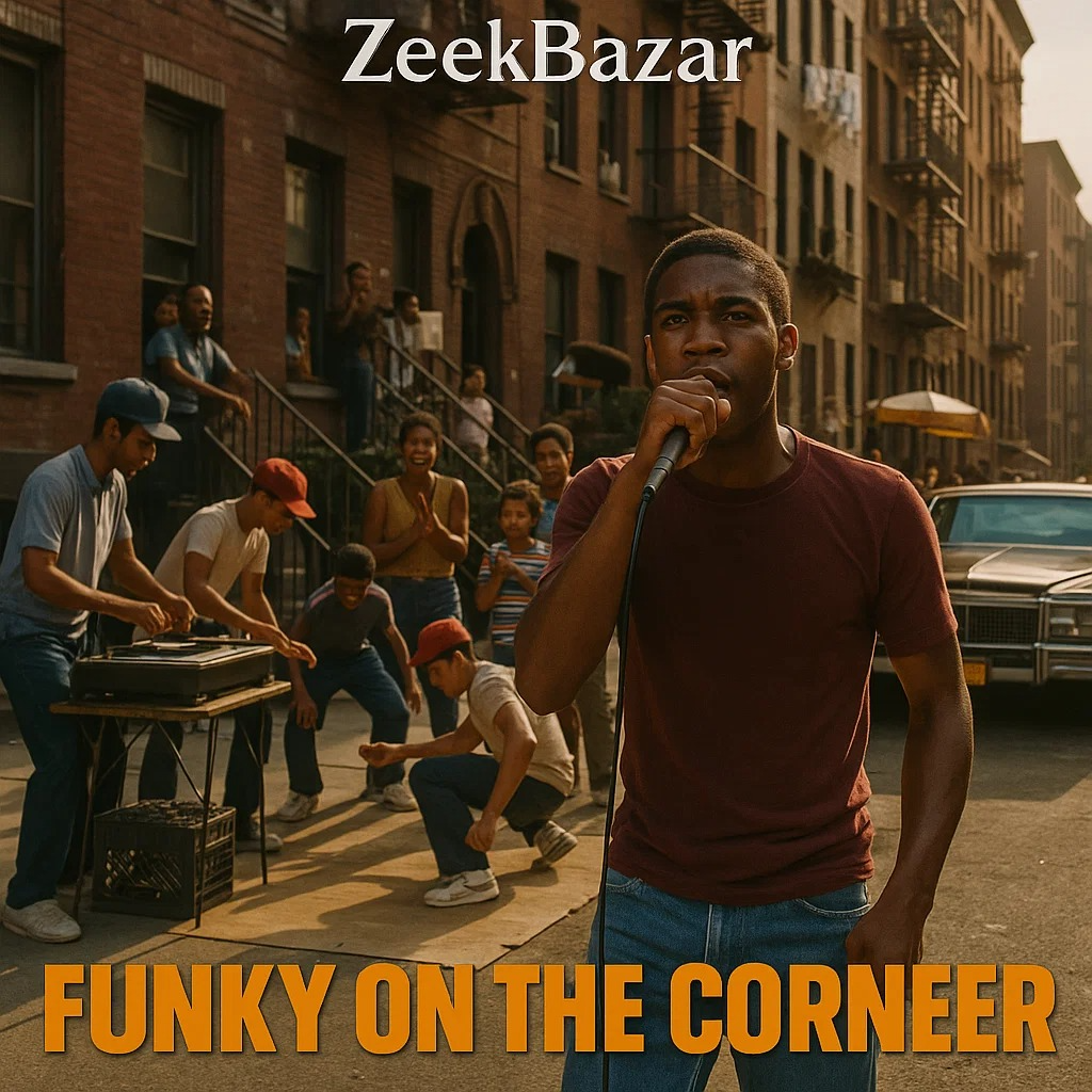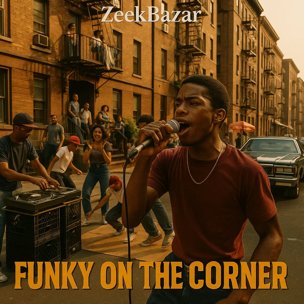 An energetic early 1980s hip-hop funk track built on punchy live drums, bouncing slap bass, and rhythmic horn stabs, The groove should feel tight and contagious, mixing the raw energy of funk with the storytelling style of classic rap, The lead male vocal delivers charismatic spoken verses with playful swagger, while crowd-like backing chants emphasize key phrases, Handclaps, scratches, and short organ hits keep the beat alive and dynamic, The arrangement must evolve like a live jam — spontaneous, fun, and unstoppable — celebrating rhythm, movement, and confidence, The overall mood is upbeat, urban, and vibrant, capturing the joy and humor of the early hip-hop era