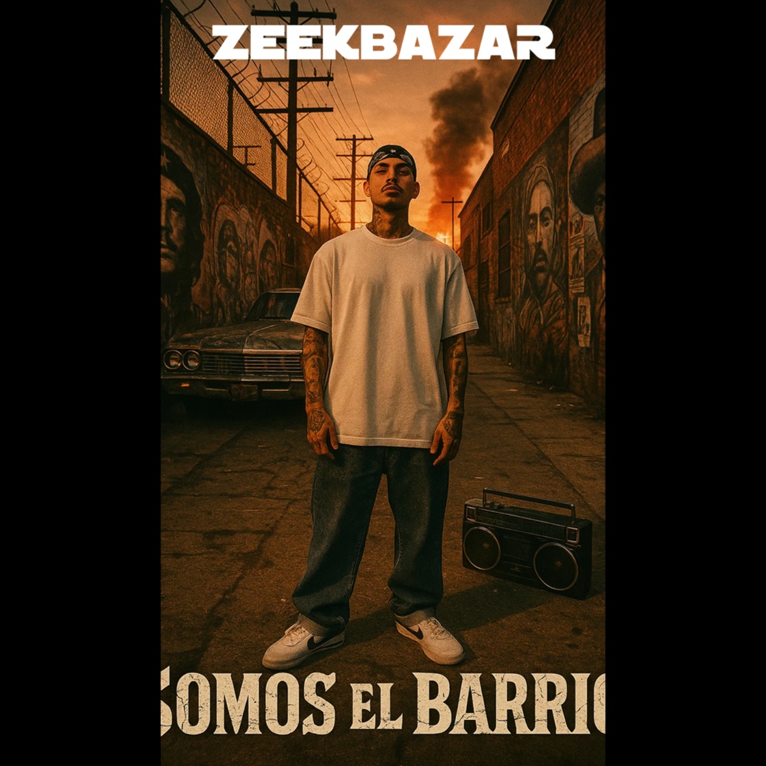 A Latin-hip hop anthem with gritty West Coast flair, driven by chunky boom‑bap drums, Spanish guitar riffs, brass stabs, and vinyl scratches, Mid‑tempo groove with bilingual rap delivery (English & Spanish), energetic choruses, and a swaggering, defiant attitude, The vibe is rebellious, culturally rooted, and perfect for street-level swagger with a barrio pride, Designed for head‑nodding beats, catchy hooks, and rhythmic bravado