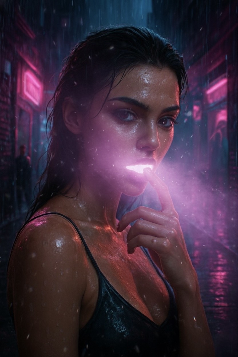 Produce a high-energy, genre-blending EDM banger with West Coast gangster rap attitude & hard-hitting bass, Include: vocoder, beautiful Vocaloid & Autotune vocals, synthpop textures, experimental hyperpop elements, neurofunk-inspired rhythms, dada house influences, post-genre pop flair, neon funk vibes, ambient synth layers, high-energy electronica, vogue/glambient textures, error disco glitches, deep grooves, & rhythmic evolutions, Use layered synths, dirty synths, Moog bass, bass house drops, & stereo effects panned left to right, Include aggressive, punchy, & hypnotic EDM drops with tight rhythmic flow, Infuse the track with West Coast gangster rap swagger, attitude, & vocal phrasing, making the bass hard-hitting & floor-shaking, while keeping it futuristic, experimental, & catchy