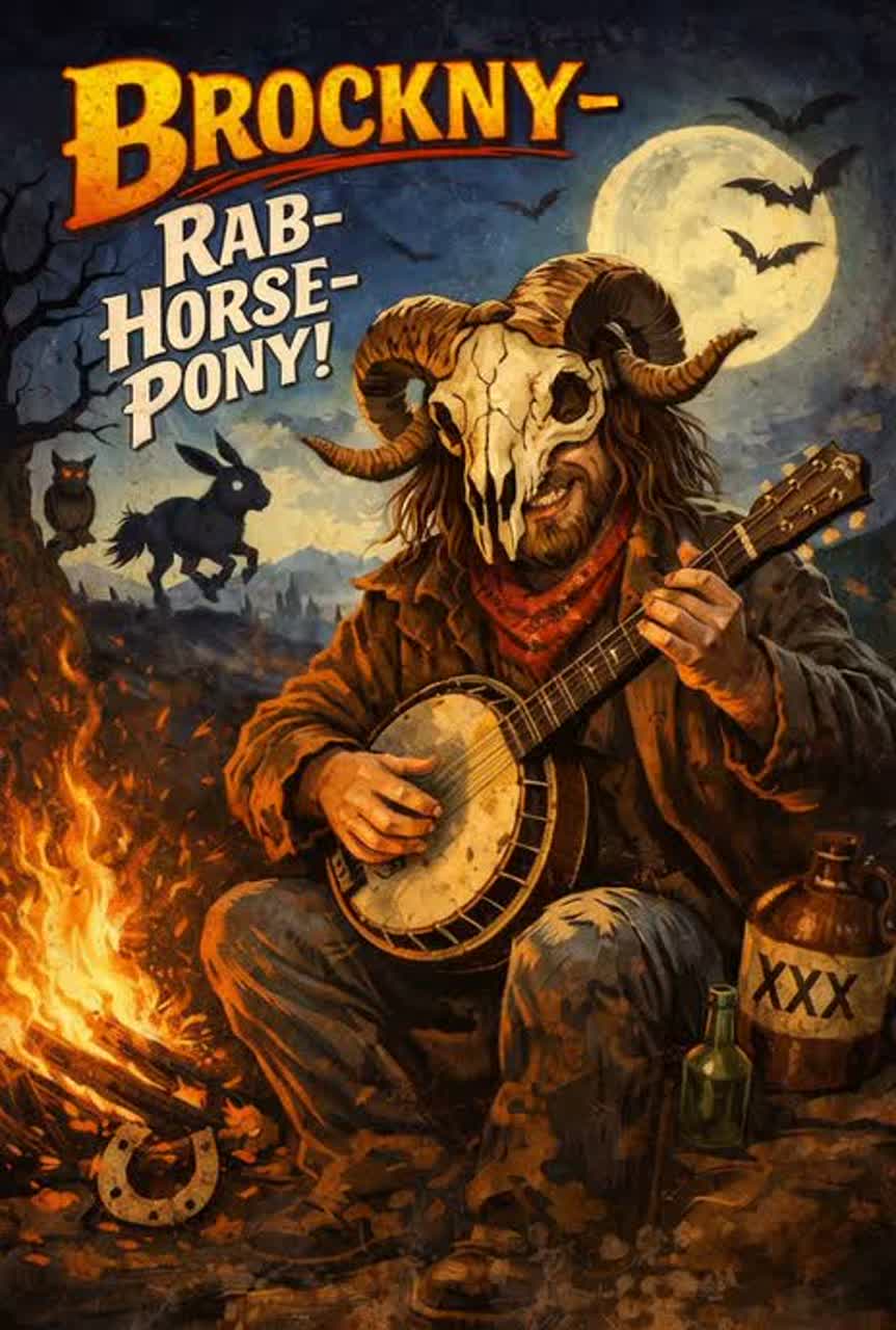 Bluegrass-rock fusion with a fast-paced, driving rhythm, The arrangement features a bright, percussive acoustic guitar, a prominent banjo playing rapid fingerstyle rolls, and a fiddle that alternates between rhythmic chopping and melodic soloing, A walking upright bass line locks with a standard drum kit featuring a crisp snare and active hi-hats, The vocals are a boisterous male lead with a slight Southern drawl, supported by group-shouted backing vocals and three-part harmonies during the chorus, The track includes a section of traditional yodeling, The tempo is 145 BPM in the key of G major