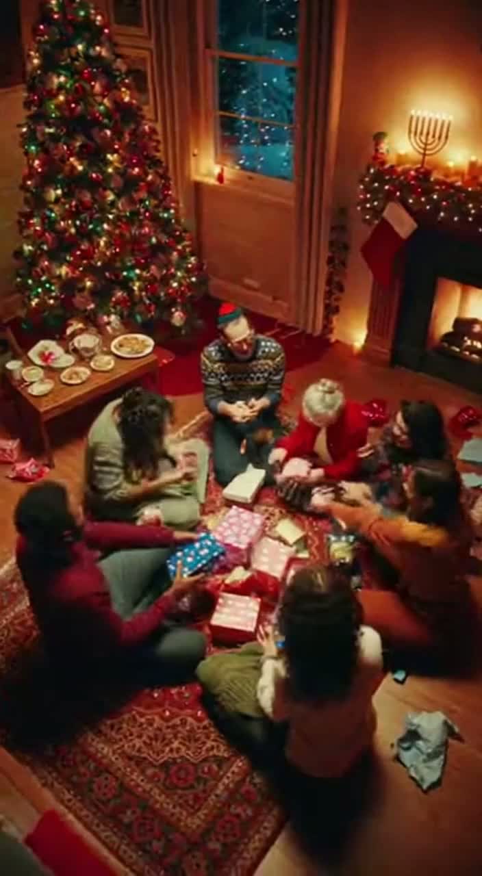 Bouncy Christmas pop rhythm with warm, cozy production and festive chimes