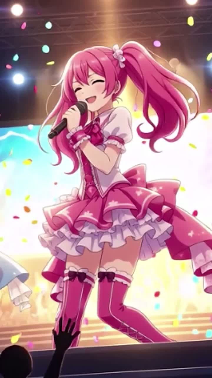high-pitched kawaii idol vocals, hyper-genki energy, rapid-fire delivery, hyper pop, J-pop, Hyper Denpa, anime-denpa tone, cutesy voice acting style, multi-layered moe harmonies, A high-energy J-pop track with a driving tempo of 180 BPM