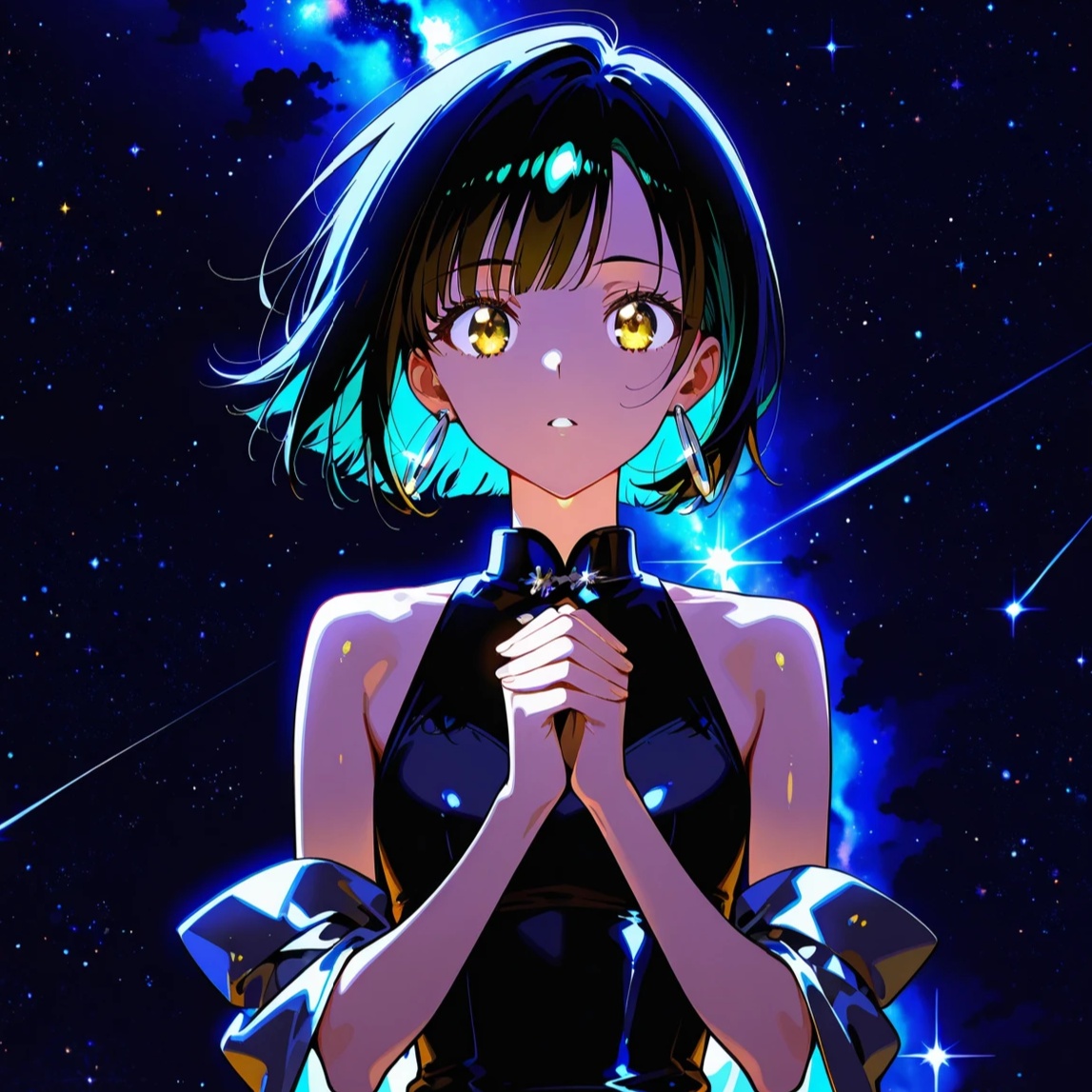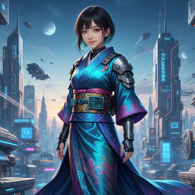 Electro-pop/J-POP, BPM 140-160, Futuristic synths, energetic beats, uplifting vibe, Cool female vocal, Fast-paced verse, buildup pre-chorus, powerful chorus, dramatic bridge, Sci-fi, cyber feel