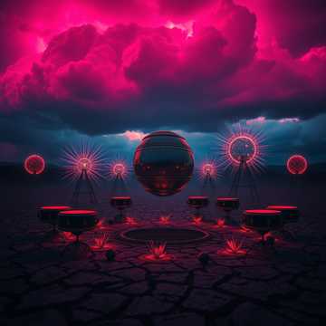 At 172 BPM, fractured drive dominates as stutter-gated, distorted industrial kicks lurch unpredictably, with micro-silences creating jagged push-pull motion, Djembe and shaker loops are granulated and shattered into metallic, glitching bursts, reordered into dense, nonlinear cyber-tribal polyrhythms, Industrial textures—mangled machinery and filtered digital debris—echo within a vast, cavernous mix, saturating the space and pulsing with a warped, corrupted low end that rattles the floor