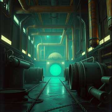 At 170 BPM, relentless "triple-kick" drums surge forward, punctuated by a metallic rimshot evoking a magnetic lock, Synthetic, ring-modulated talking drums pan wide, creating alien dialogue, Industrial textures layer in: an electric hum intensifies, while cavernous echoing iron fills the space, Drops unleash seismic hydraulic slams, military-tight and claustrophobic, in a welded-shut hall of reverb and compressed air
