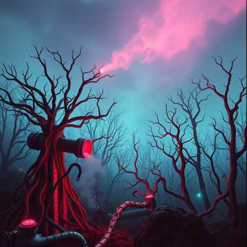 At 168 BPM, the organic-industrial fusion drives forward with a wet, heavy pneumatic kick punctuated by sickening, squelching impacts, Fleshy toms—crafted from bone-snap and flesh-slap samples—lay down a primal cyber-tribal groove, while neural hiss textures move through the stereo space: tube pumps, liquid gurgles, and organ drones that hover between synth bass and bodily rumble, Percussive sections pulse with uneasy, syncopated life, while reverb halls emphasize both machine and viscera, Distorted transitions highlight the grotesque, evolving energy, charting a forced sonic amalgamation of flesh and mechanism