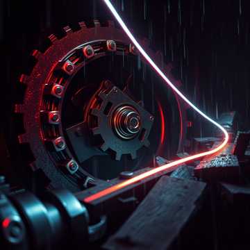 At 170 BPM, a relentless "gallop" drives the track as heavy kicks fuse with chain-on-concrete samples, their impact mirrored by a side-chained, pumping sub-bass that pressurizes the low end, Hyperactive, splintered wooden percussion (bit-crushed for digital grit) surges in, glued to the grid, Jagged metallic scrapes puncture the mix while massive, serrated clangs bring a sharp, industrial edge, Hydraulic hisses slice through as break-like transitions every 16 bars, propelling the high-precision, aggressive energy forward with an unyielding, mechanized intensity