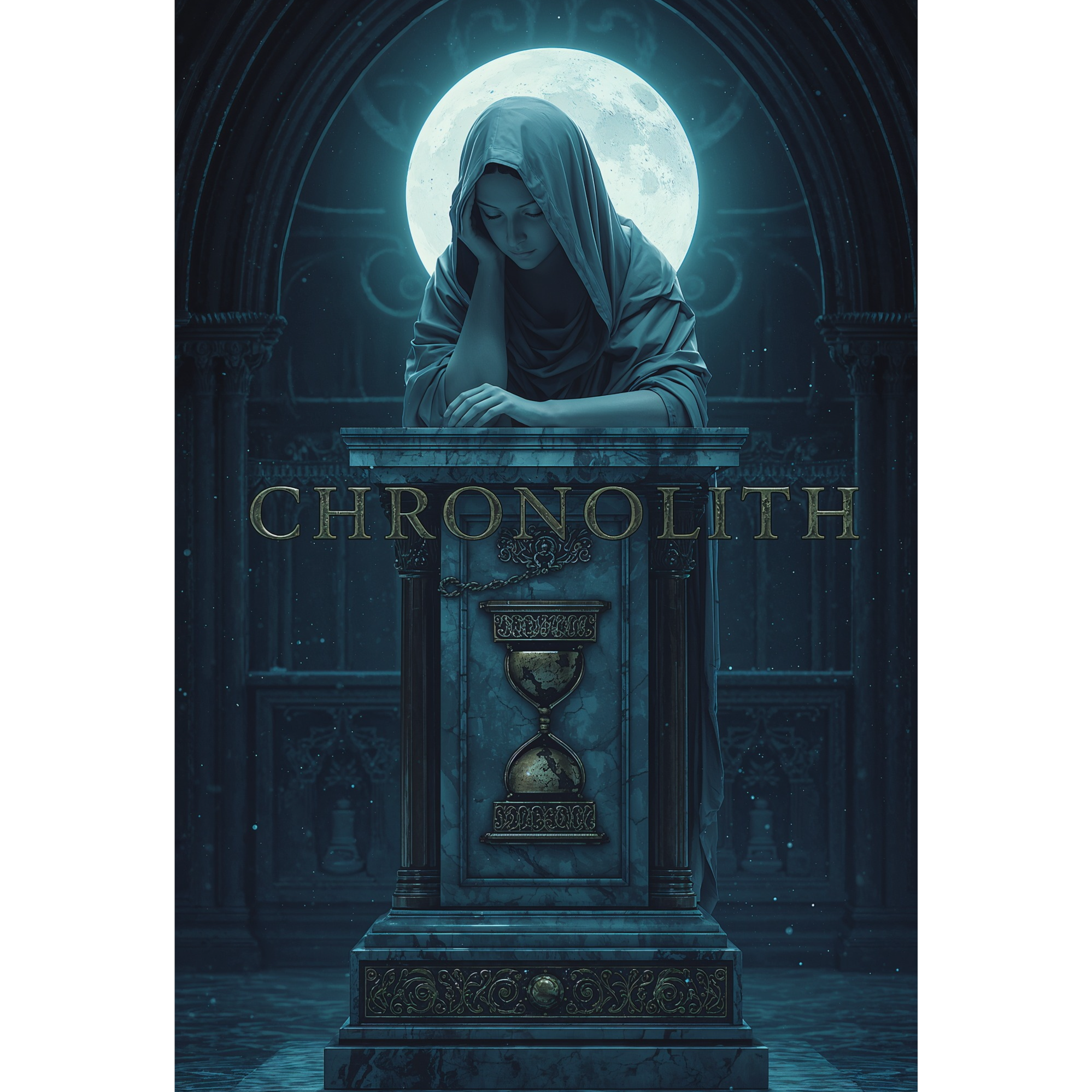 Chronolith: marble ambient × slow industrial pulse (100 BPM, 4/4, gentle dotted-eighth echo), Percussion: twin clock ticks hard-panned L/R (soft woodblock + metal click); frame-drum heart; rare low taiko on hour strikes; sand shaker like hourglass; tiny chisel taps as fills, Low end: contrabassoon pedal + sine sub swelling under bells, Bells: distant bronze bell in E minor = “big time”; bowed crotales shimmer = “small time”, Harmony: glass harmonica + bowed vibraphone long chords; felted-piano arpeggios; violas/low strings sul tasto, Features: faint Shepard glide; granular dust swirls; short reverse swells, Vocals: calm female alto (G3–C5), close, breathy; verses half-spoken inner monologue; hook legato whispers; soft choir hums on bell hits, Story/Structure: statue POV; ages pass, names flake, Intro wind+bells → Verse ticks/sand → Hook bell ostinato+deep pulse → Bridge museum-night hush → Outro fading loop