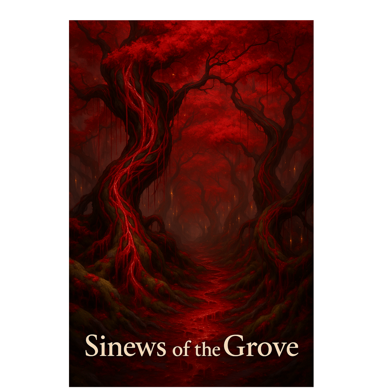 Heavy doom/horror metal with dark folk + ritual ambient, slow-burning dread, “chainsaw” baritone guitars, crushing drums, organic drones (tagelharpa, hurdy-gurdy), ritual percussion intro for ancient calm, merging into massive doom riffs, Ghostly theremin = dying god’s wail; bullroarer = deep ritual vibration, Theme: The Traitors — corrupted souls bound by betrayal, roaming cursed woods to find and transform new victims, Story: A forest masked as ordinary, but truly the pulsing flesh and veins of a dying god whose shattered body has lingered for centuries; to survive, it lures travelers inside to consume and make them part of itself, Atmosphere: descent into cursed woods, heartbeat in silence, betrayal, unwanted transformation, Bonus if lyrics use “golden” and “blood”, Vocals: deep resonant male voice, calm hypnotic narrator becoming predatory dying god; shifts to guttural roars/harsh whispers, ending in dark close whisper