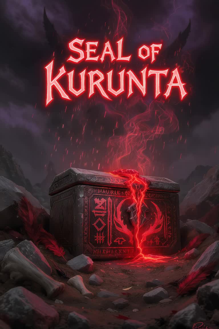 Symphonic metal with cursed orchestral grandeur, 110 BPM, Layered tagelharpa drones, dark brass and string swells, and slow, heavy ritual drums (taiko, toms), Guitars are low, dissonant, and droning — think baritone or bowed guitar for a cursed, unholy texture, Add ghostly theremin melodies that echo ancient spirits, Vocals tell the story of a man who opens a forbidden box, breaking the seal of Kurunta, Inside lies a buried secret — a divine curse of rebellion, He transforms from fearful mortal to tyrannical god, Vocal tone evolves from whisper to possessed roar, Choirs chant in ancient syllables, Ends with tagelharpa and theremin fading into silence, Mood: Epic, mythic, cursed, From awe to corruption, A dark symphonic journey worthy of unleashing an ancient curse