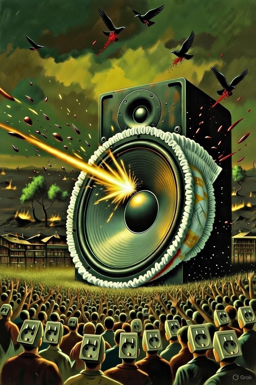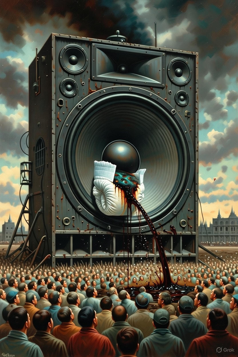 Brutal death metal track launches with blast beat drumming, palm-muted guitars, and guttural bass, Layers of distorted, downtuned riffs collide with intense, abrasive screaming and visceral samples of dying sounds, woven into breakdowns and dissonant transitions, sustaining relentless energy